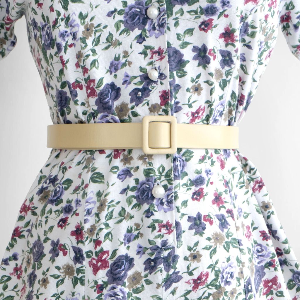 Circa 1980s. White jumpsuit with florals print.