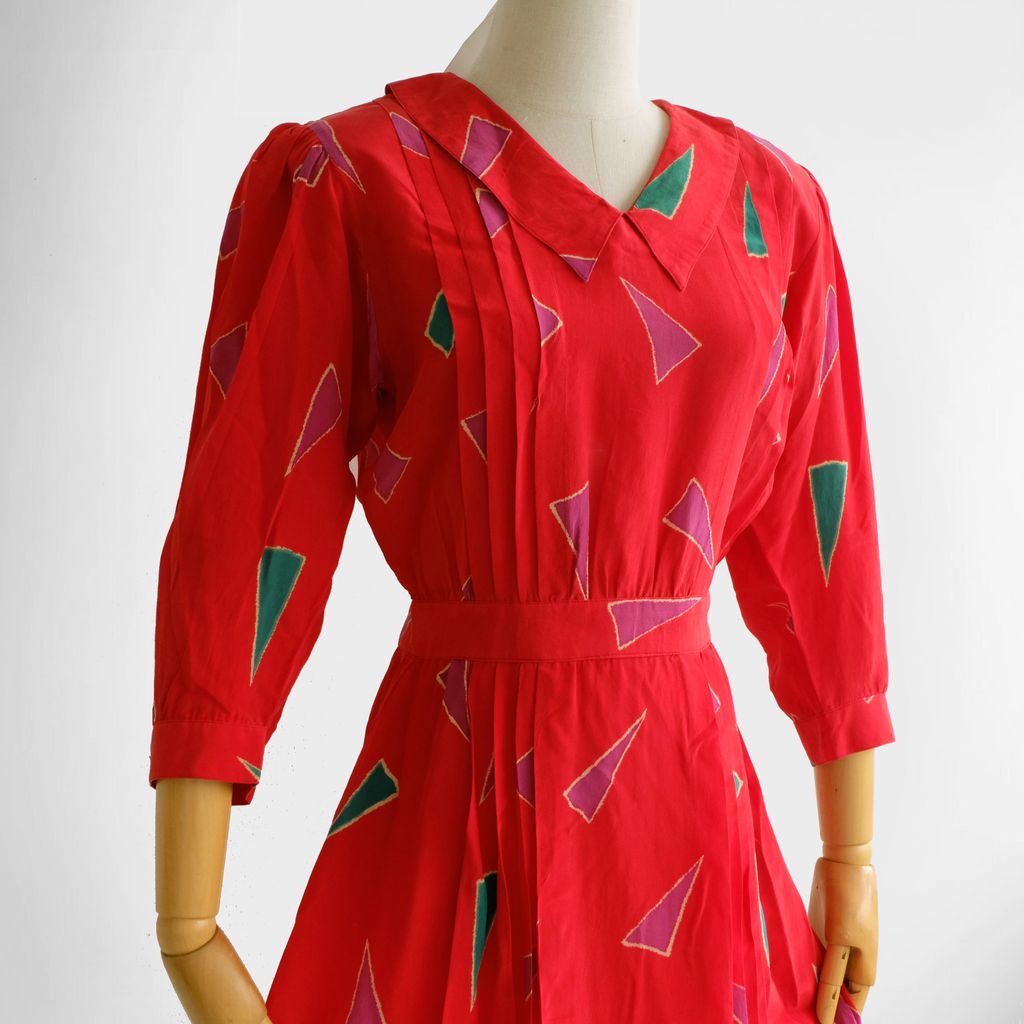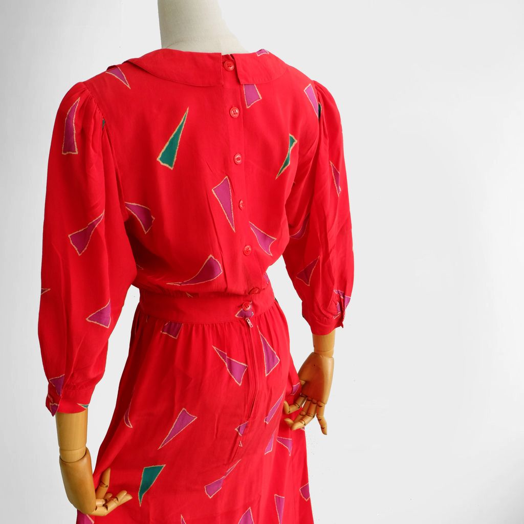 Peter pan collar neckline. Padded shoulder. Pleated chest details. Puffy sleeves. Back buttons closure. Fixed waist. Polyester rayon fabric. Unlined.