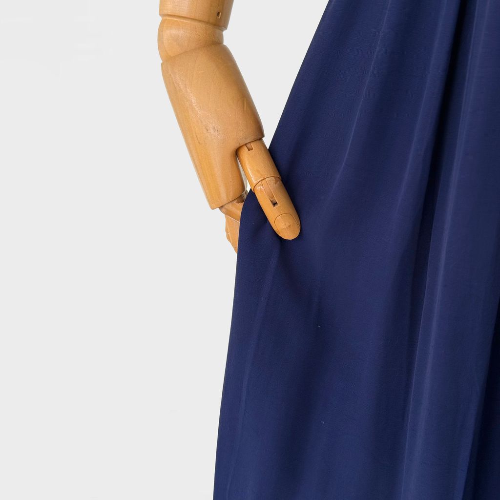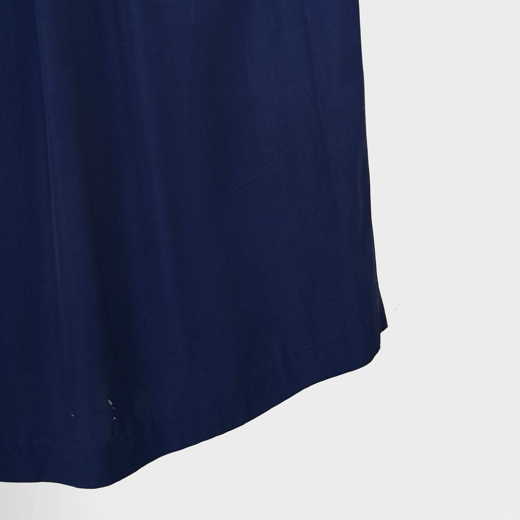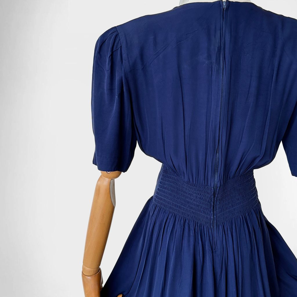Circa 1980s. Dark blue dress with lace embroidery neckline.
