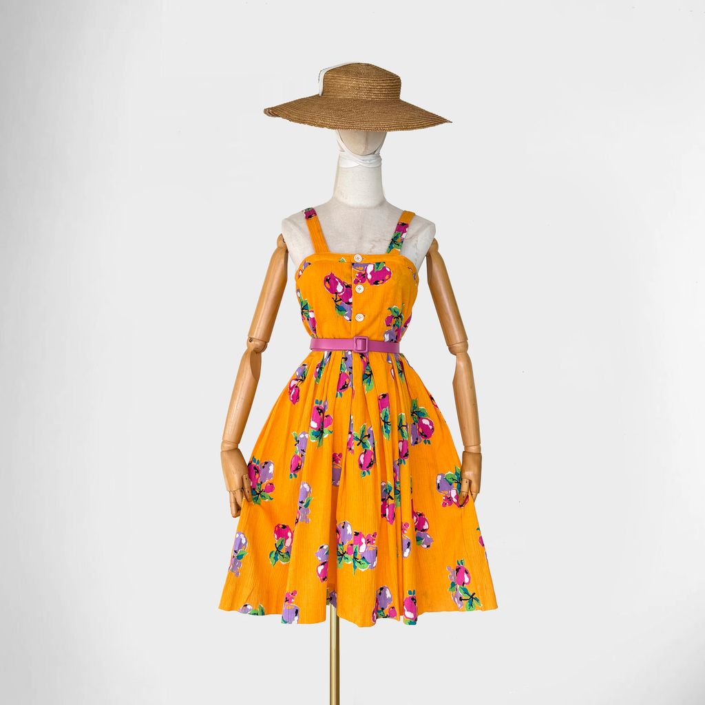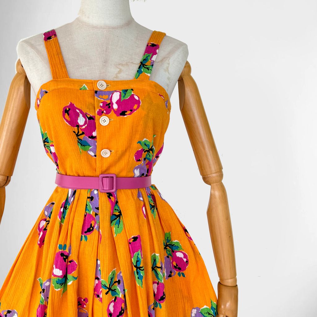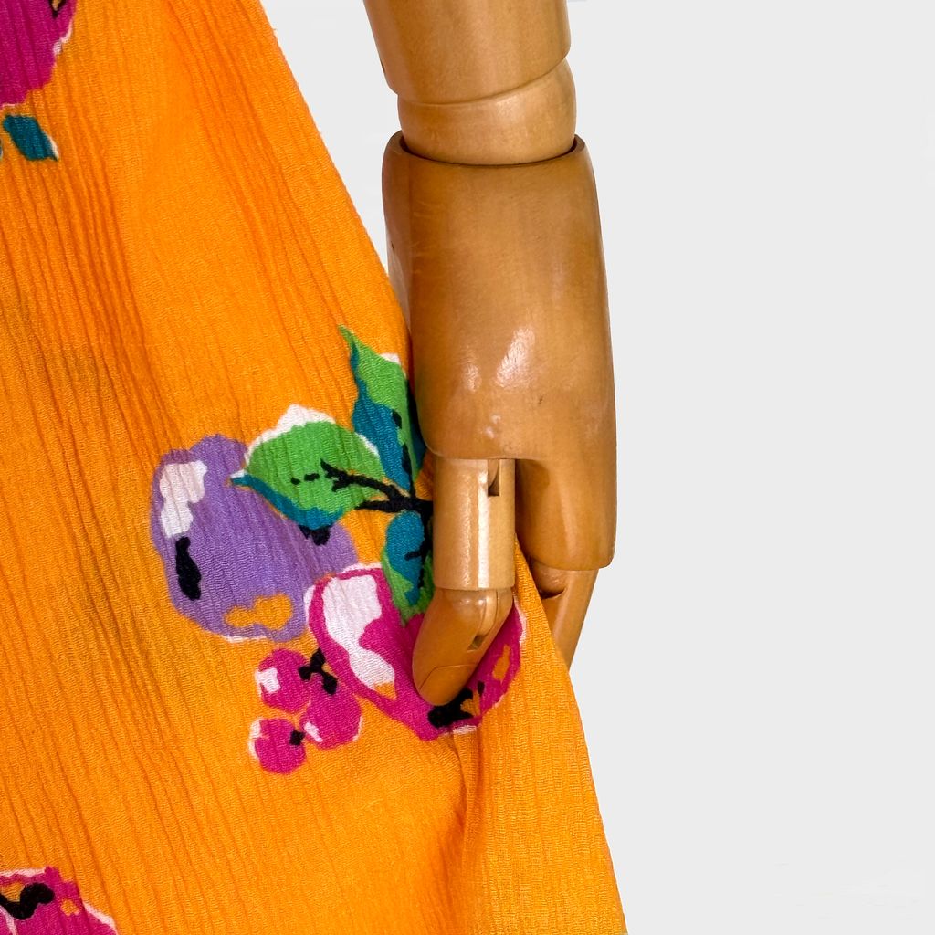 Front buttons closure. Fixed pleated waistline. Unlined. Cotton crepe fabric. Belt not included.