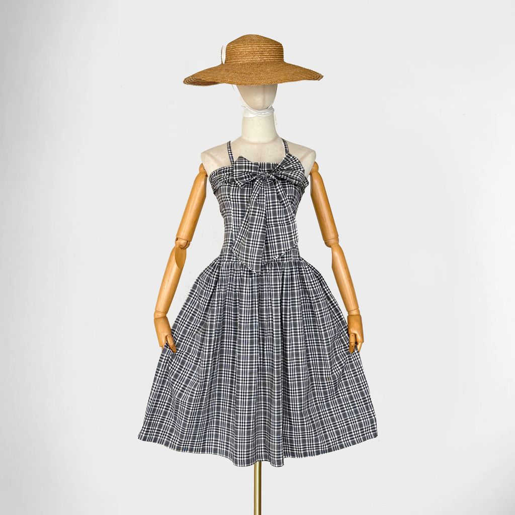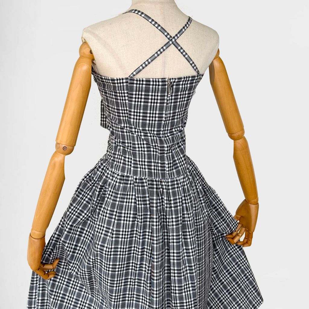 Circa 1980s. Timeless black &white dress with checkered print.