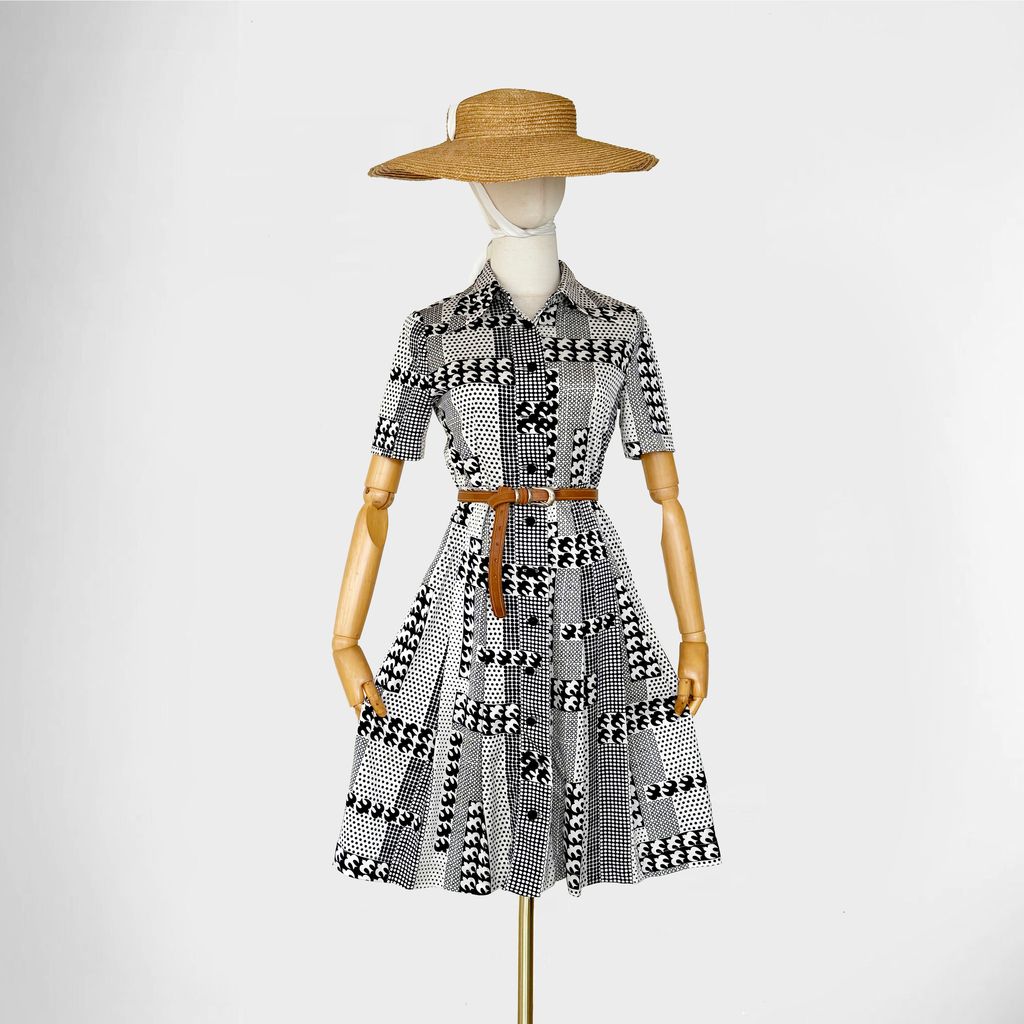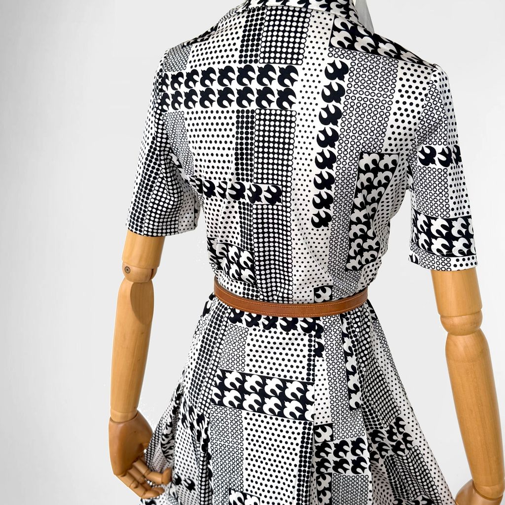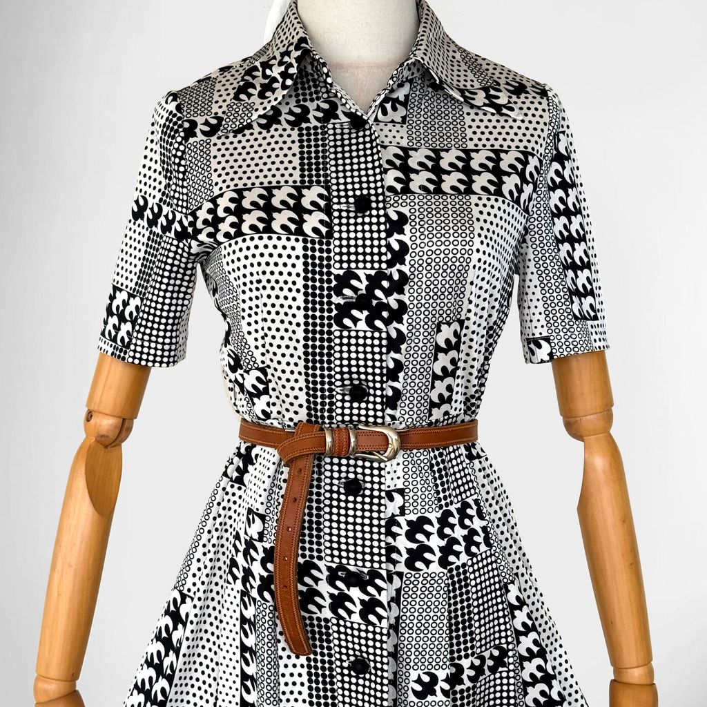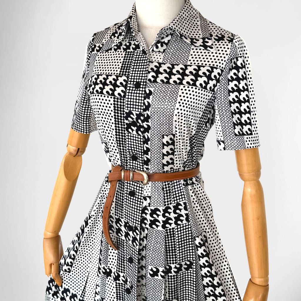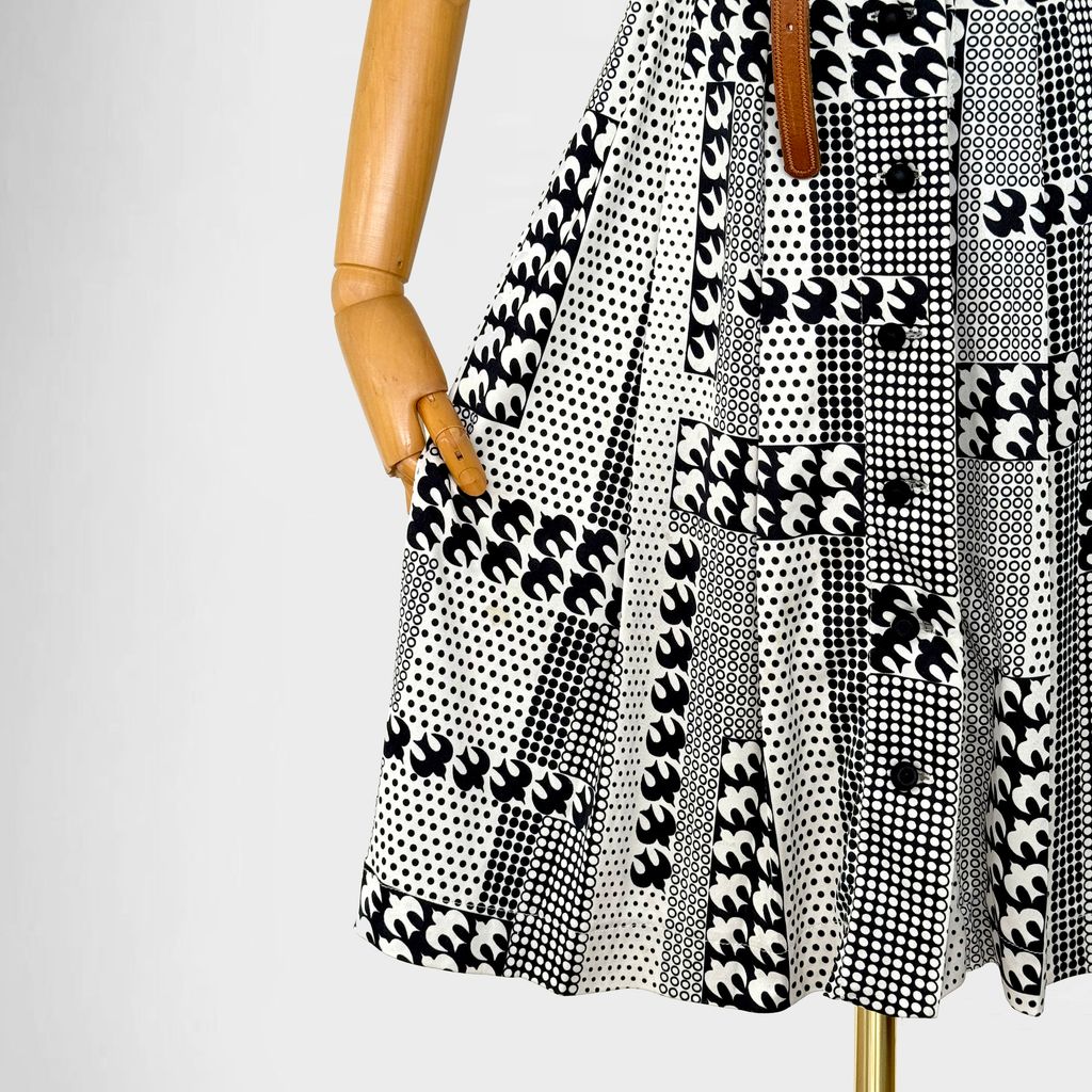 Fromt buttons closure. Pleated skirt. Fitted waist. Unlined. Polyester fabric. Belt not included.