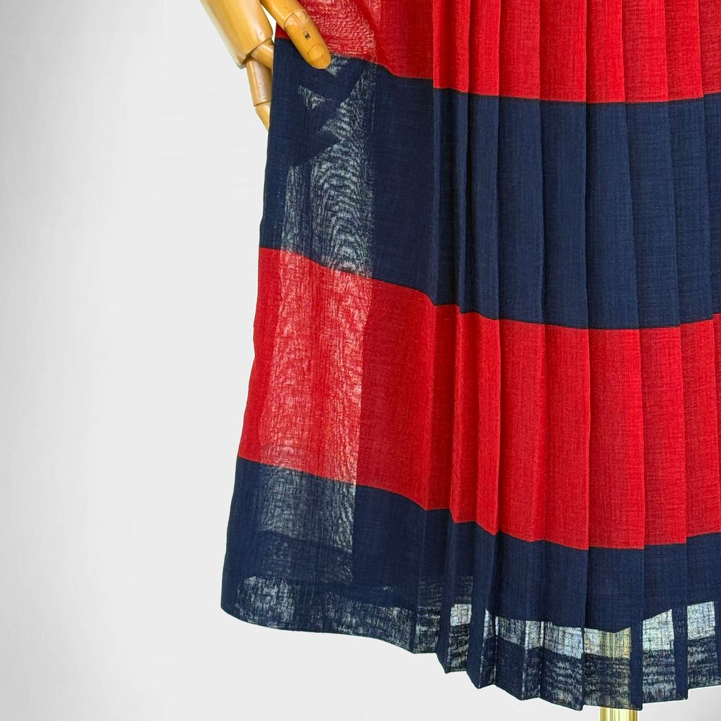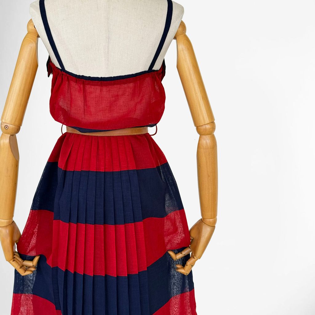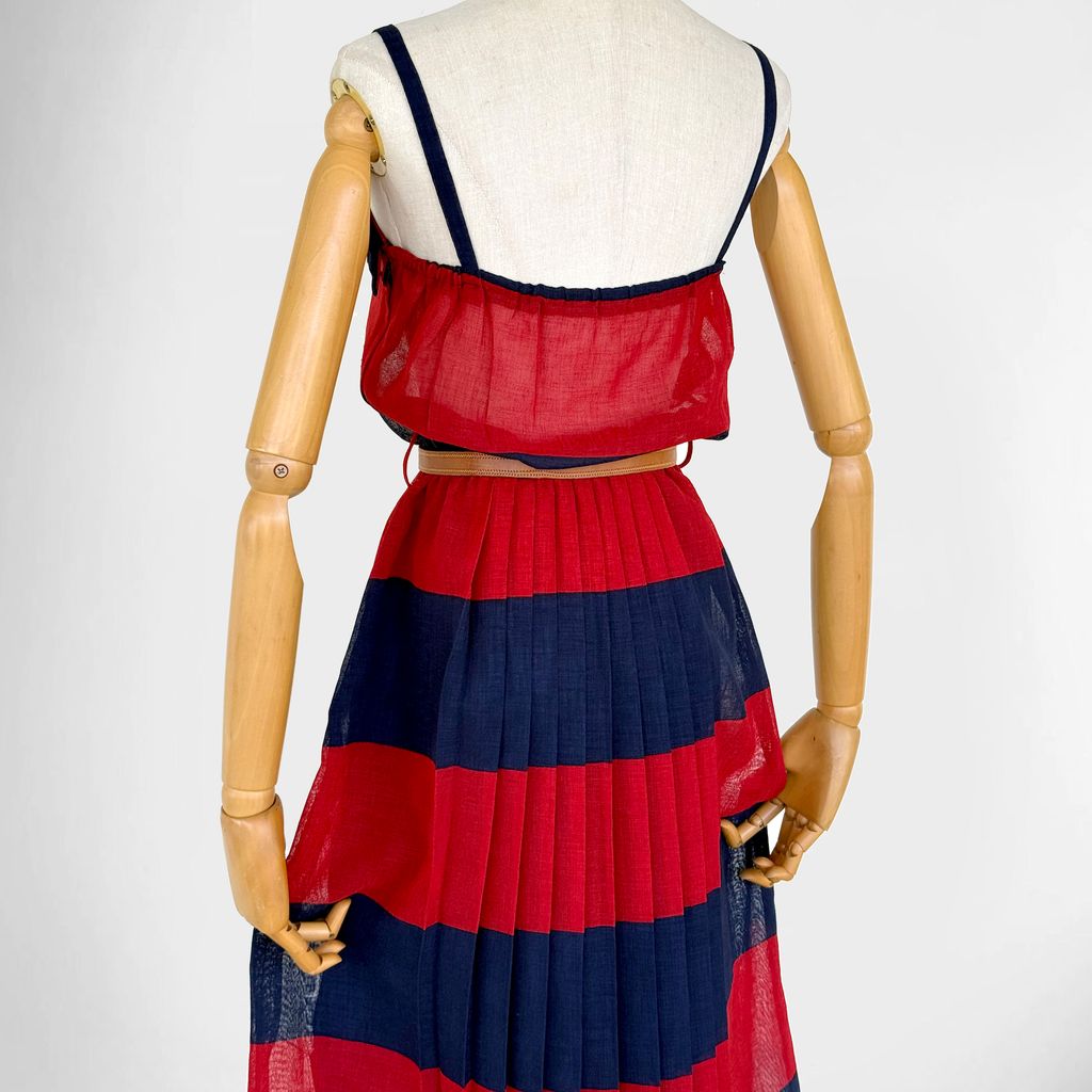 Circa 1980s. Beautiful sleeveless red & navy blue dress.
