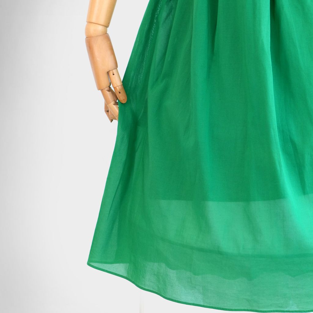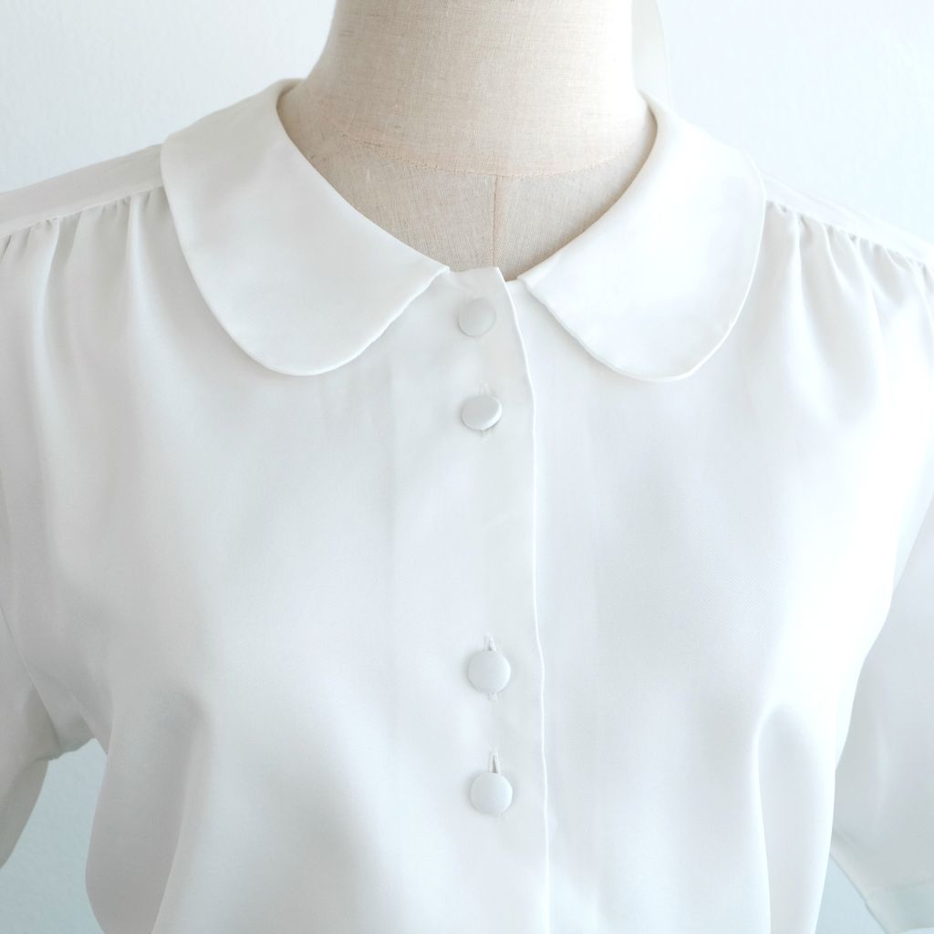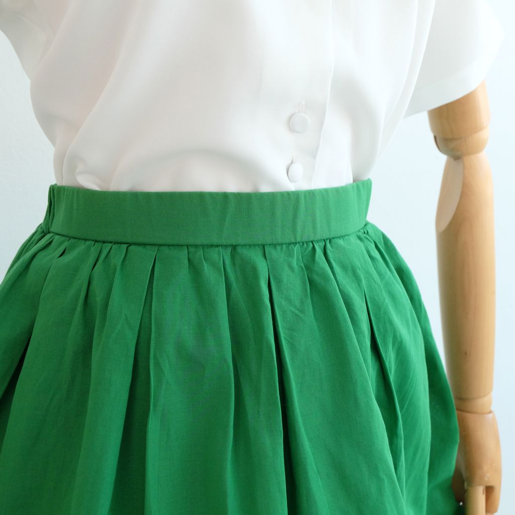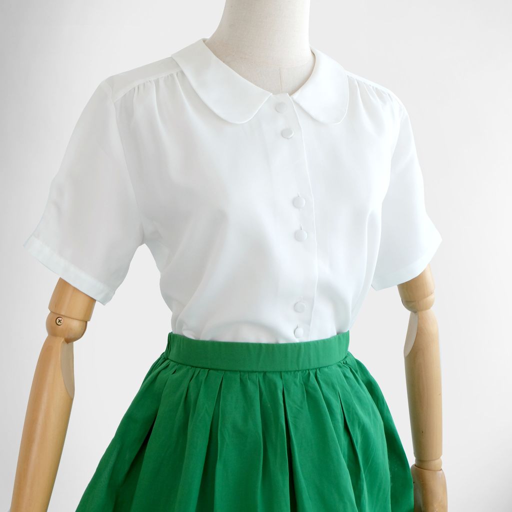 Circa 1980s. Peter pan collar white blouse with green skirt. Selling as a set.