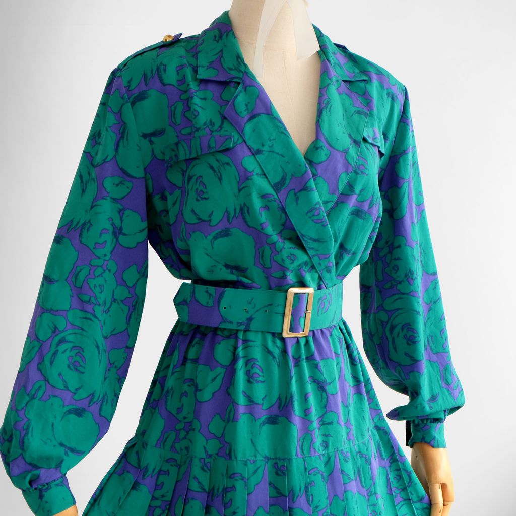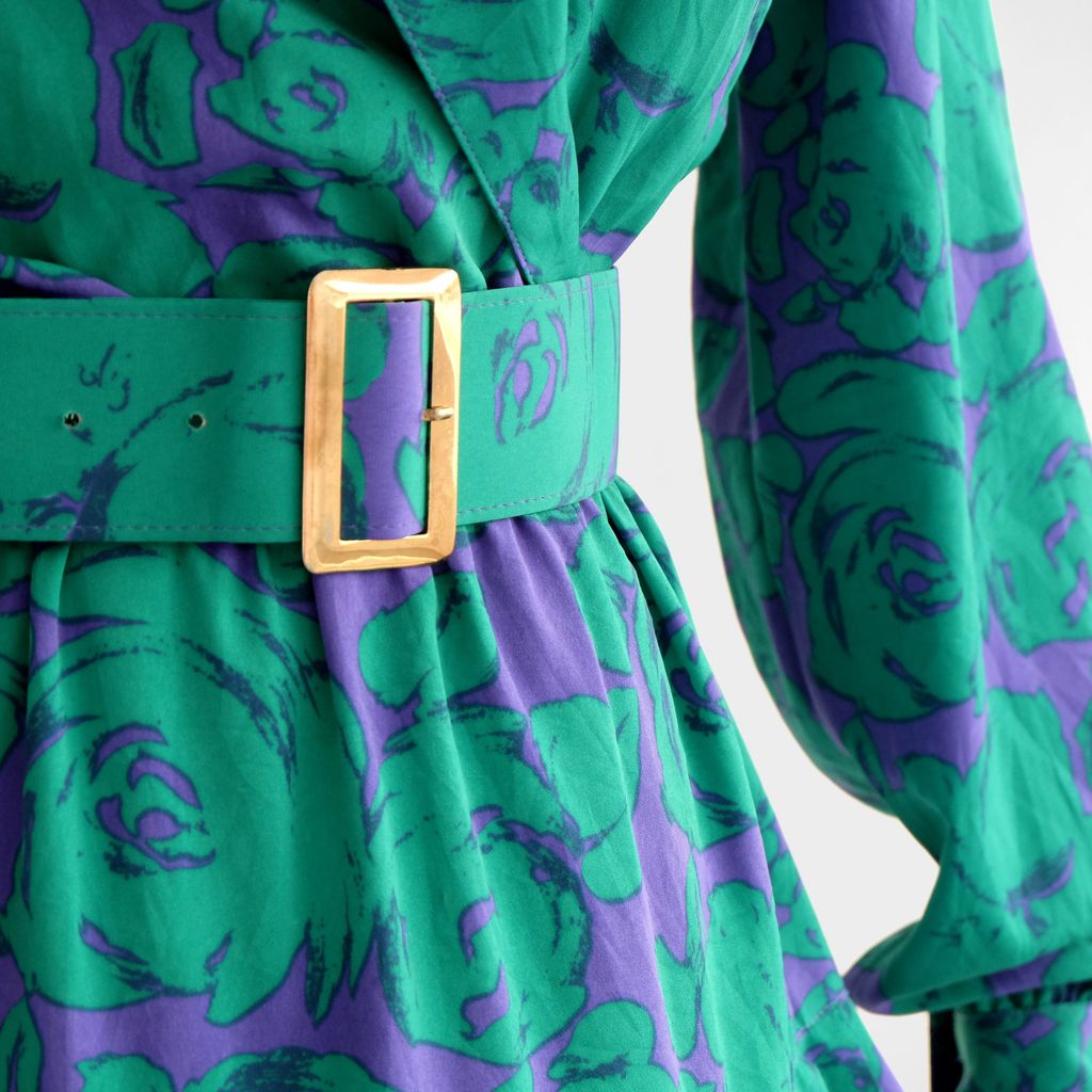 Long Sleeve. Mini chest pockets. Pull over. Pleated skirt. Elastic waist with matching belt. Polyester chiffon fabric.