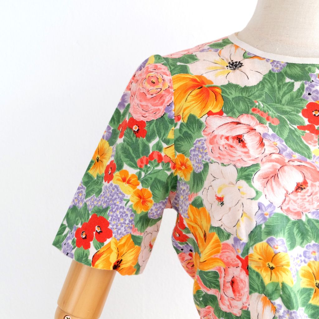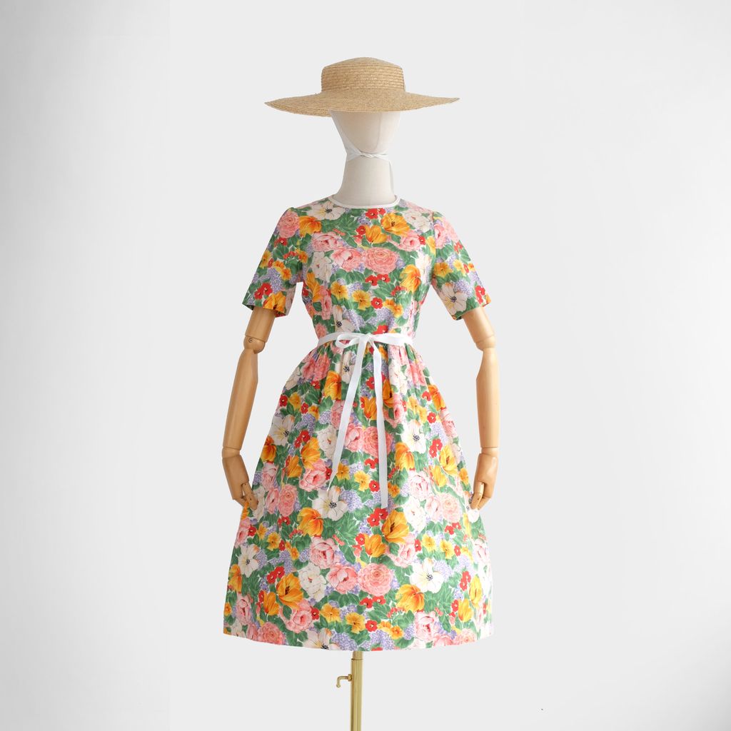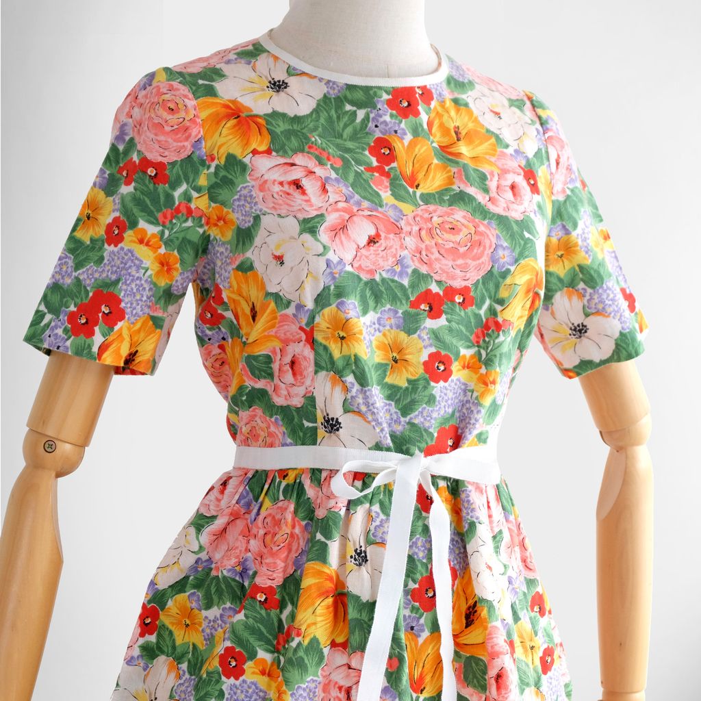 Circa 1980s. Exquisite multi colour dress with florals print.