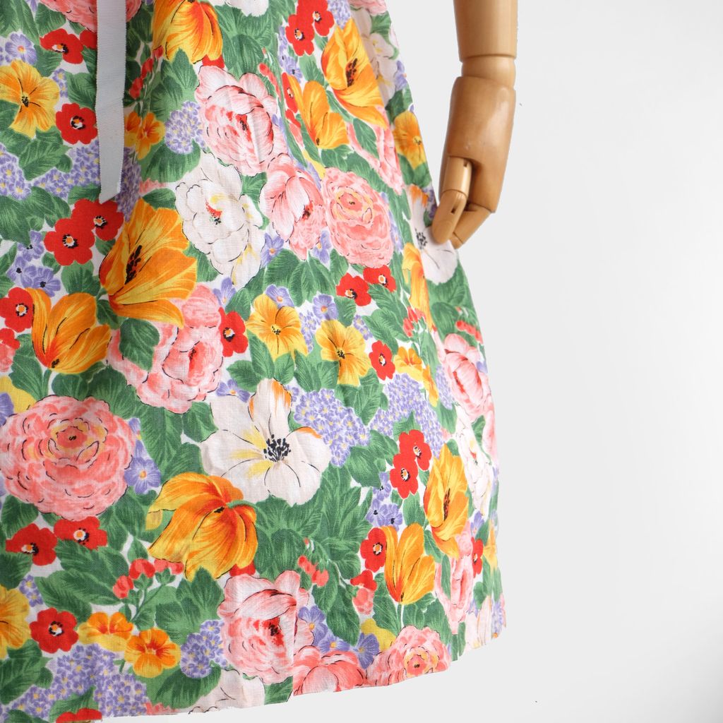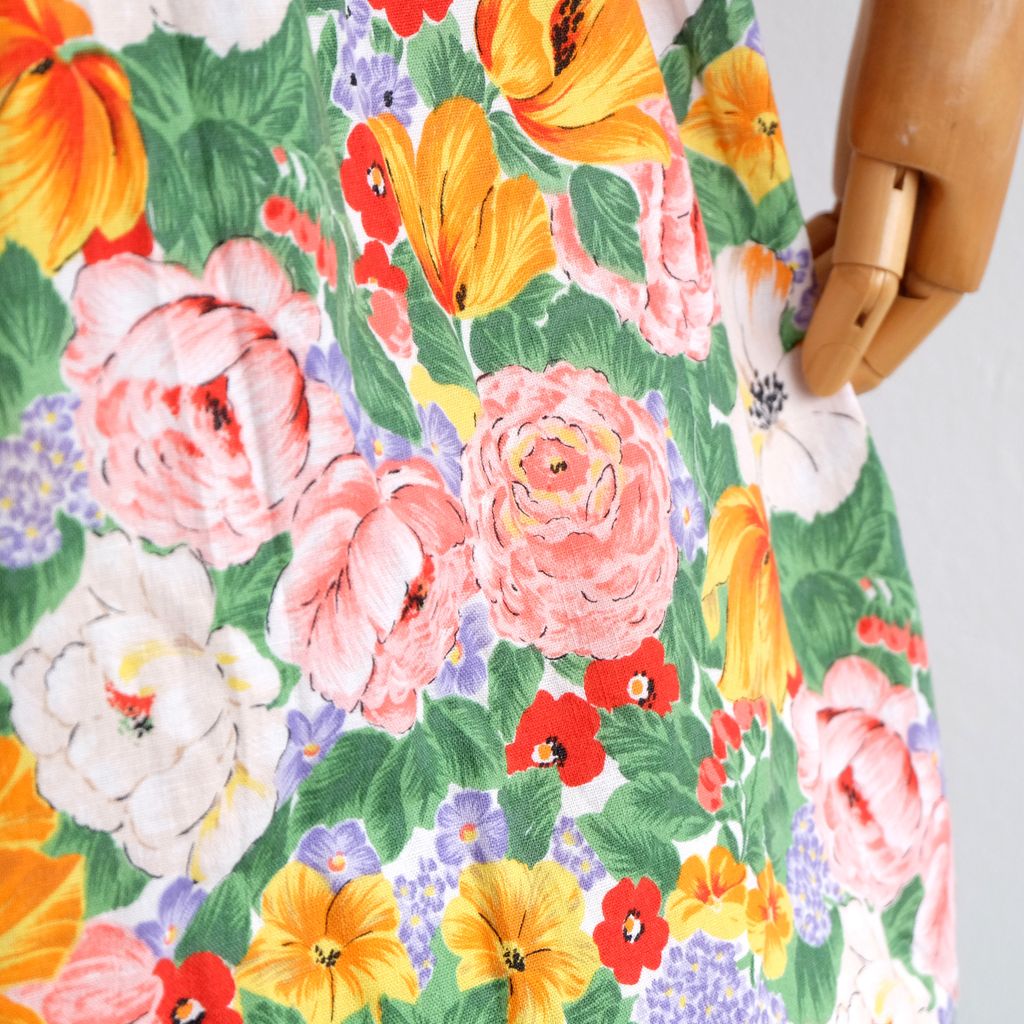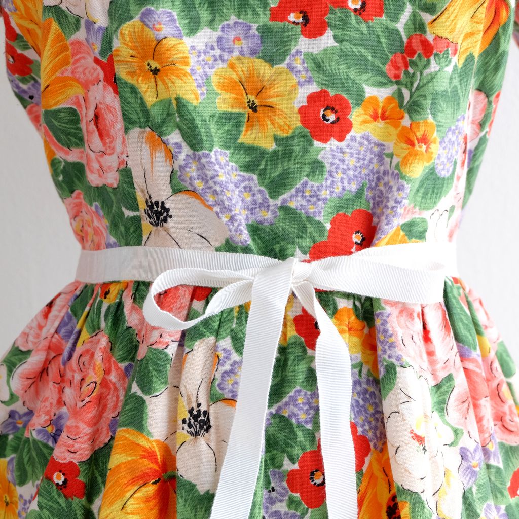 Circa 1980s. Exquisite multi colour dress with florals print.