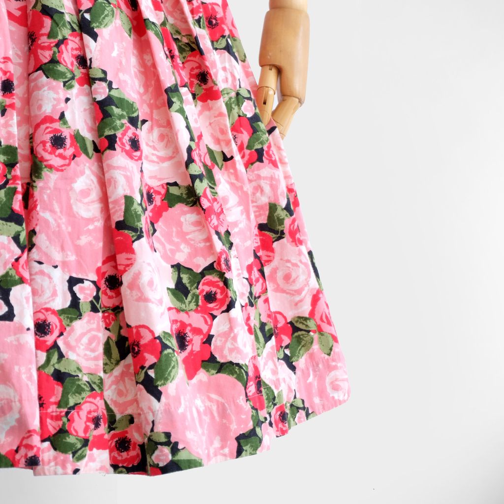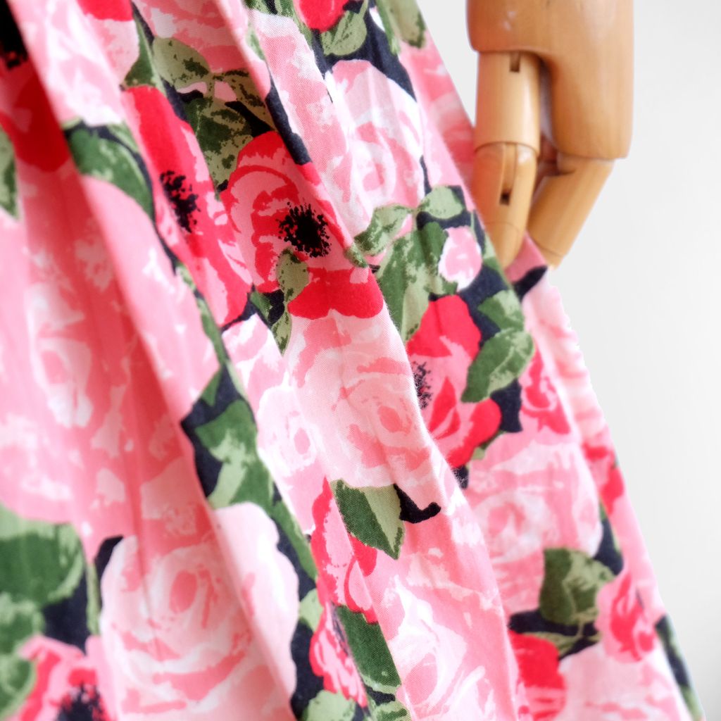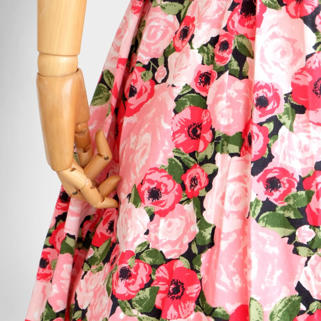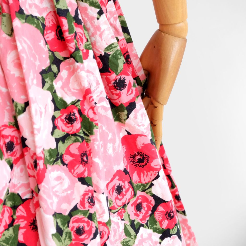 Circa 2000s. Super beautiful pink red dress with floral prints.
