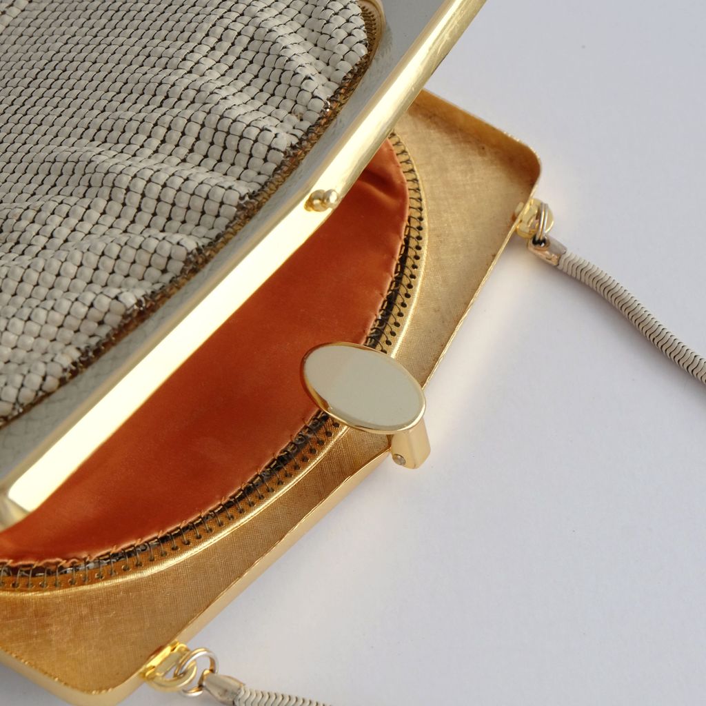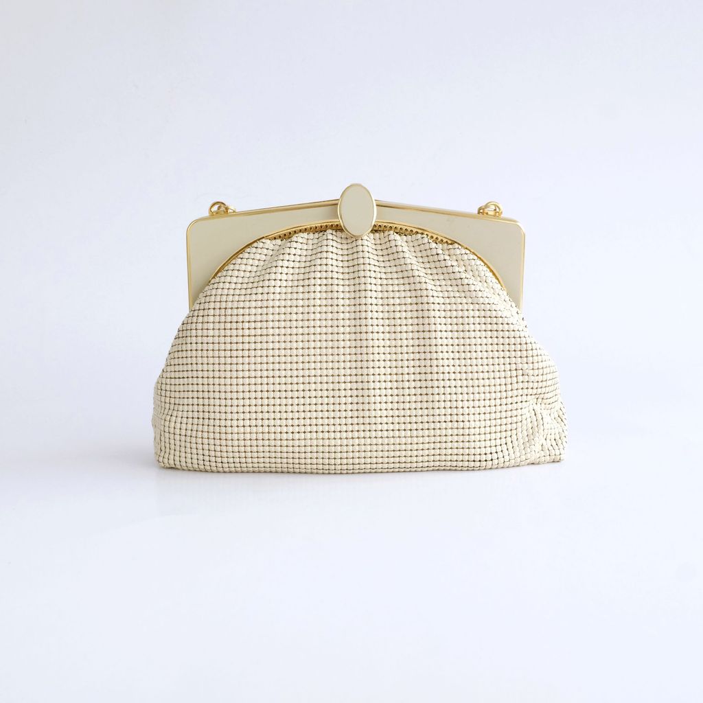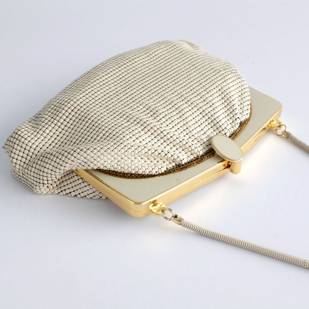 Circa 1970s. Original Vintage Glomesh cream metal mesh handbag.