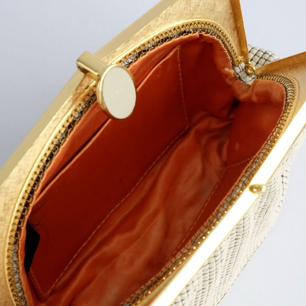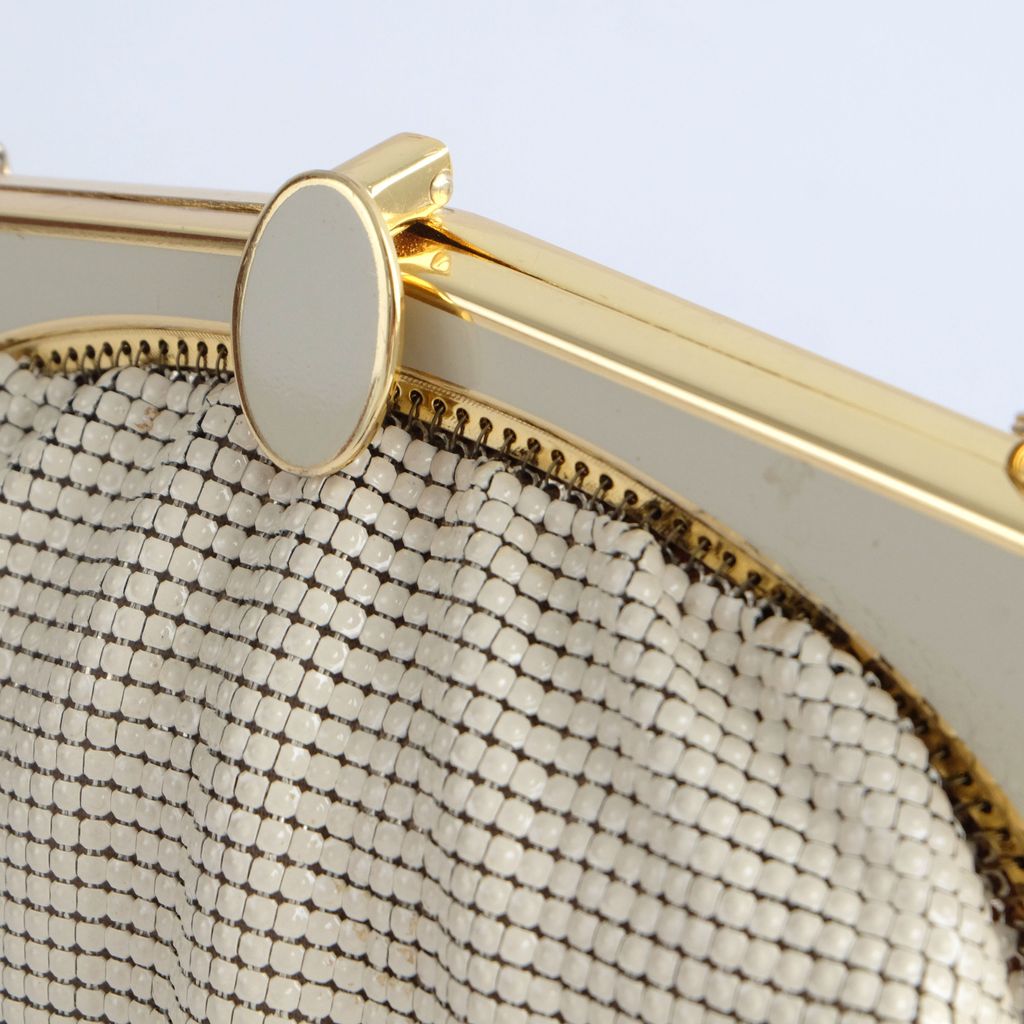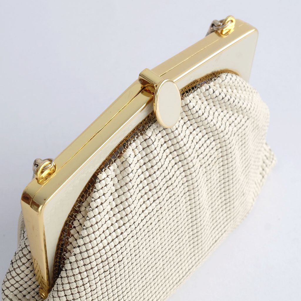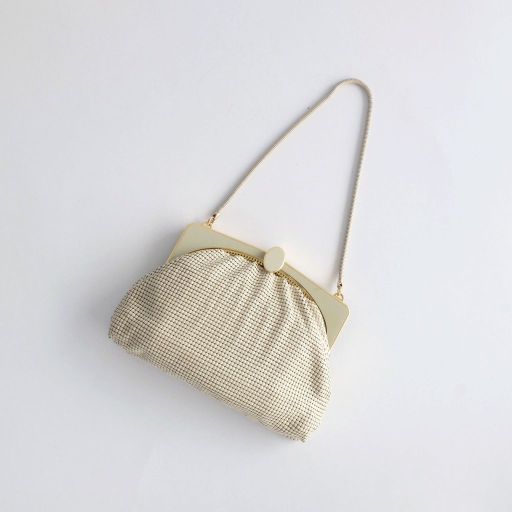 Circa 1970s. Original Vintage Glomesh cream metal mesh handbag.