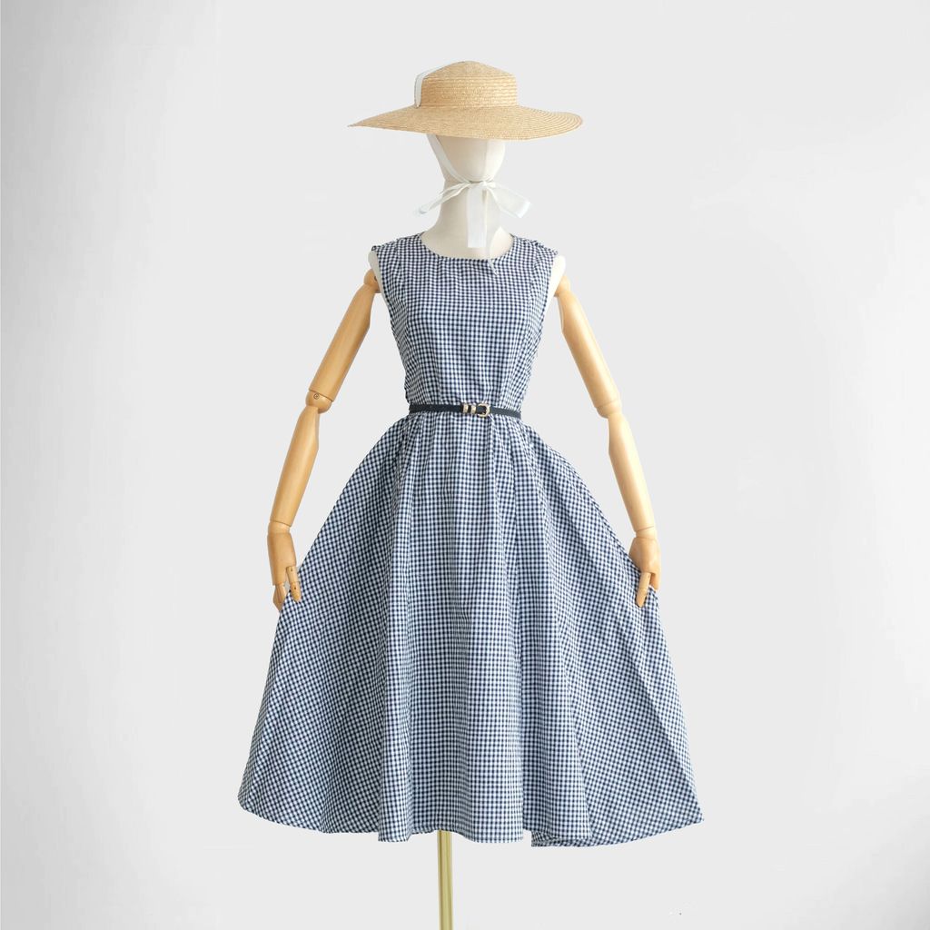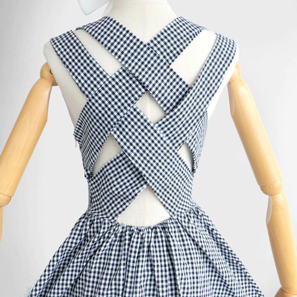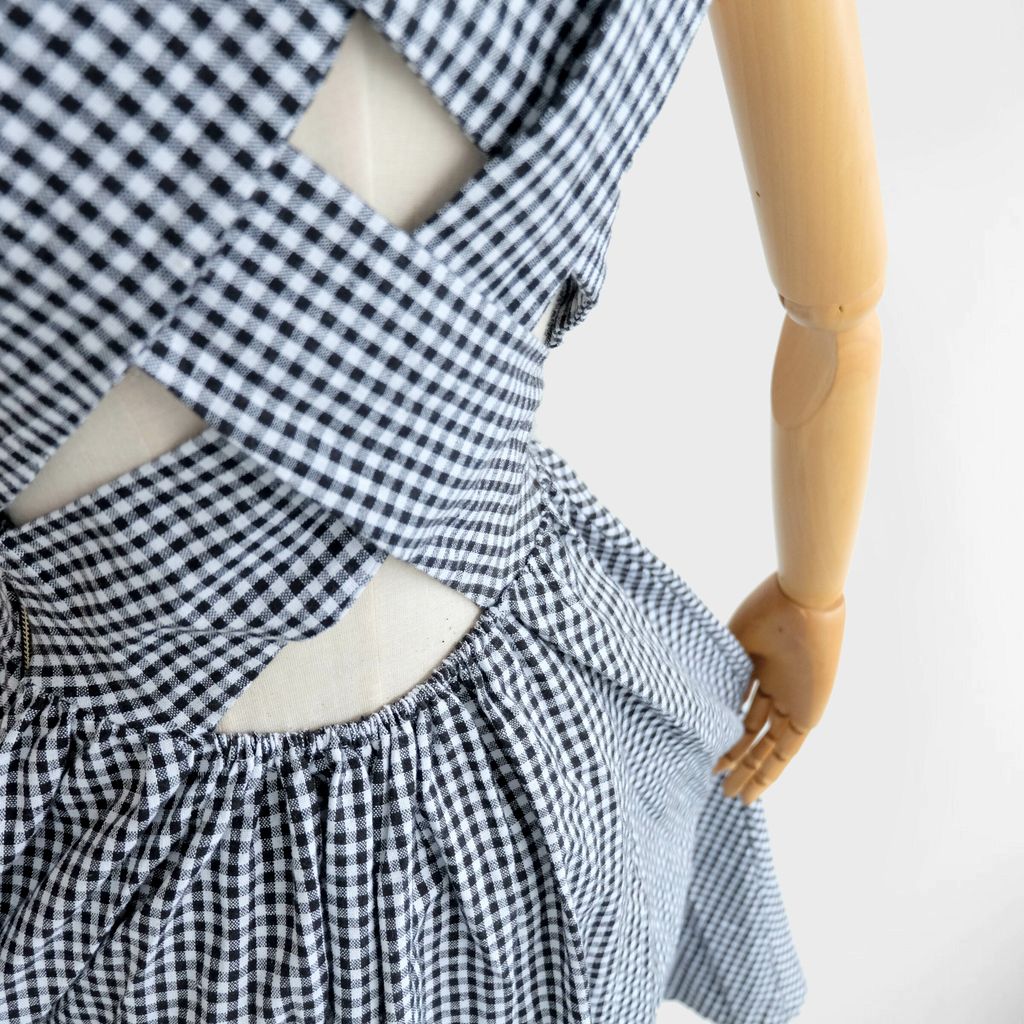 Circa 1980s. Beautiful black & white dress with checkered prints.