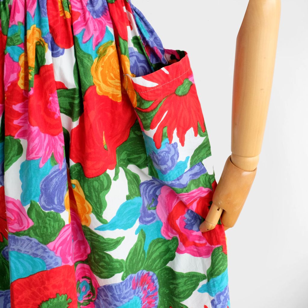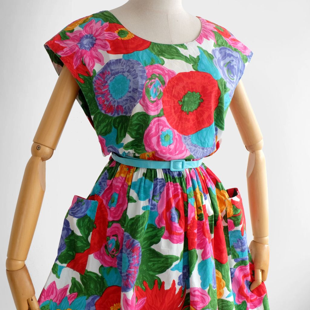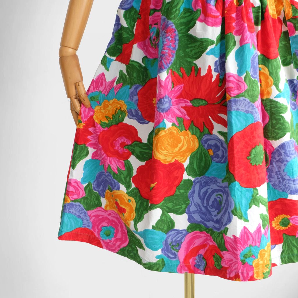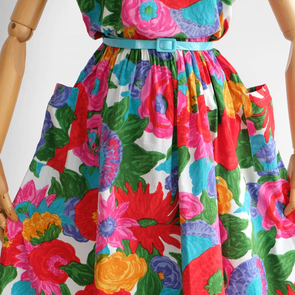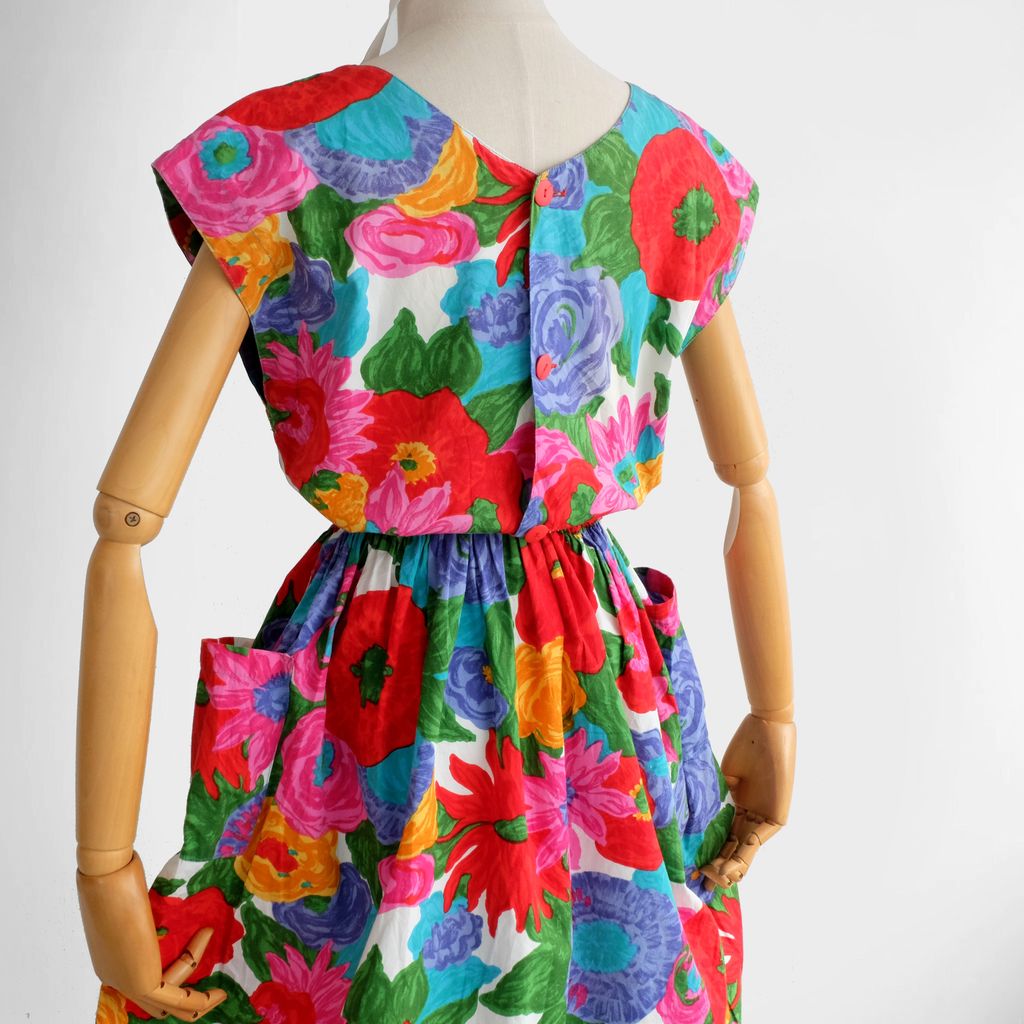 Circa 1980s. Gorgeous bright colours dress with florals print.