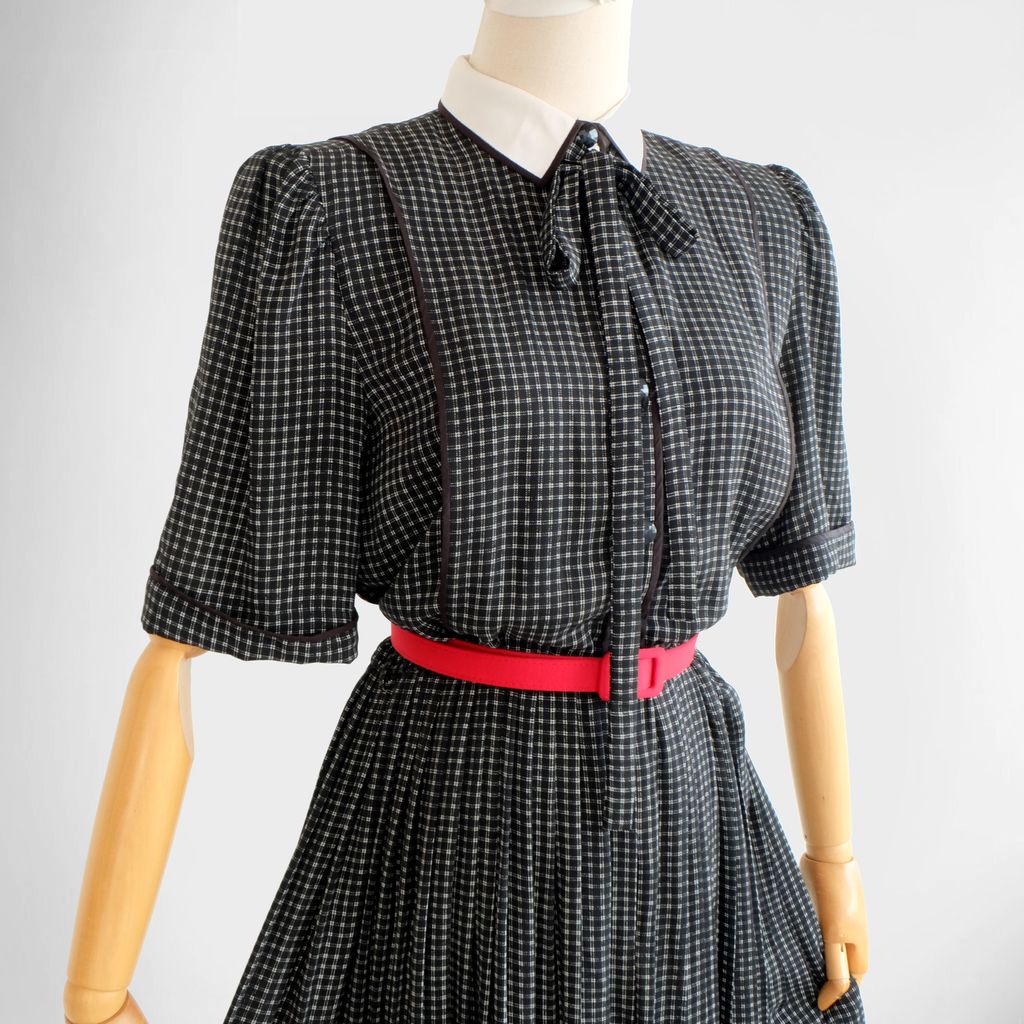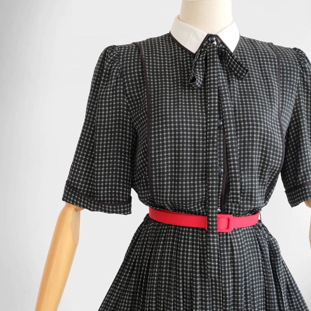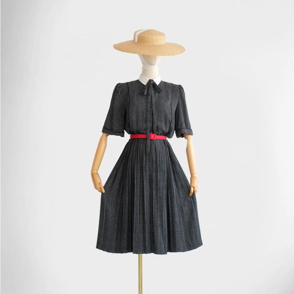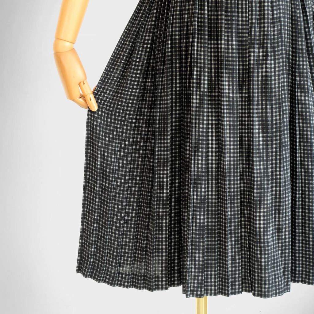 Circa 1980s. Classic black dress with dogtooth print.