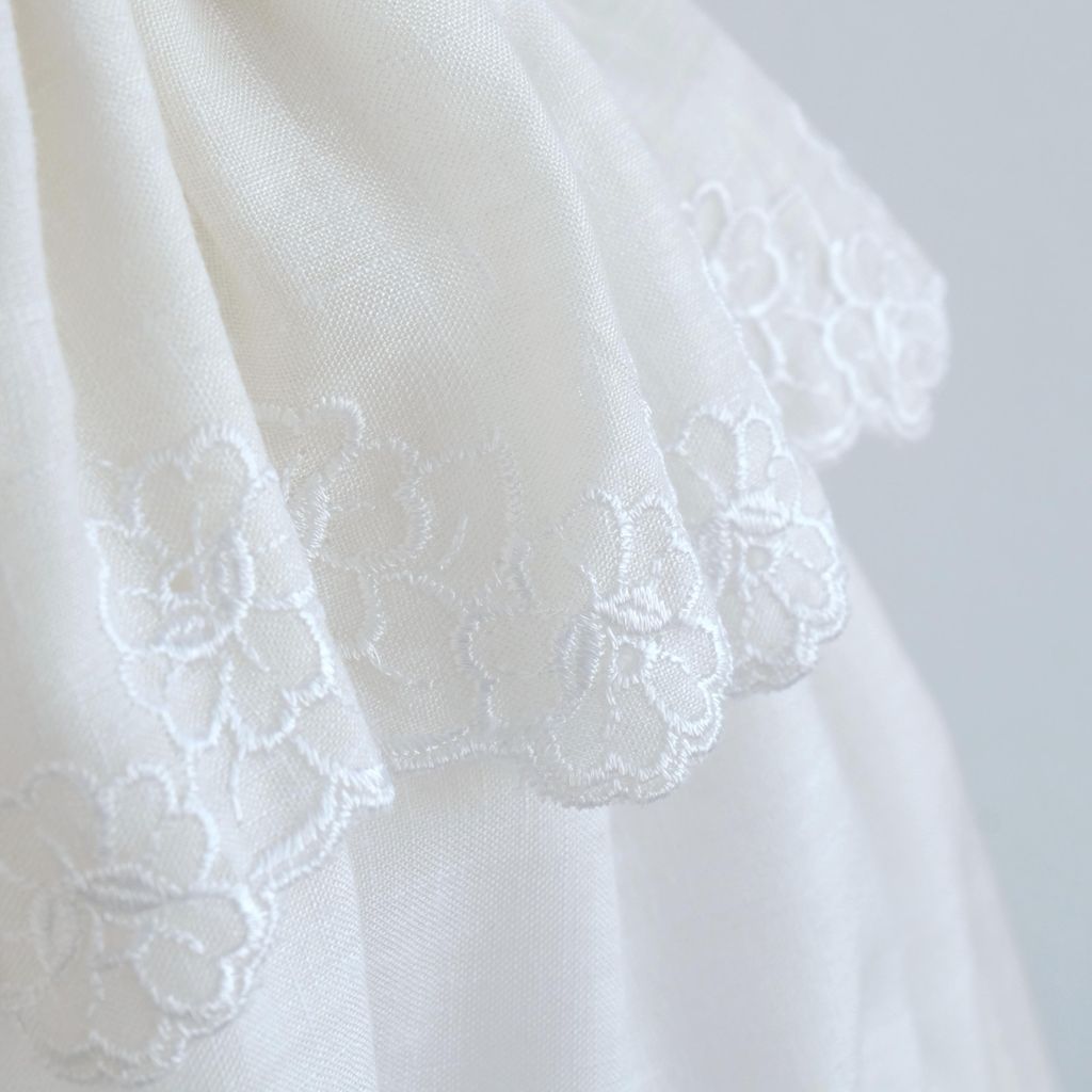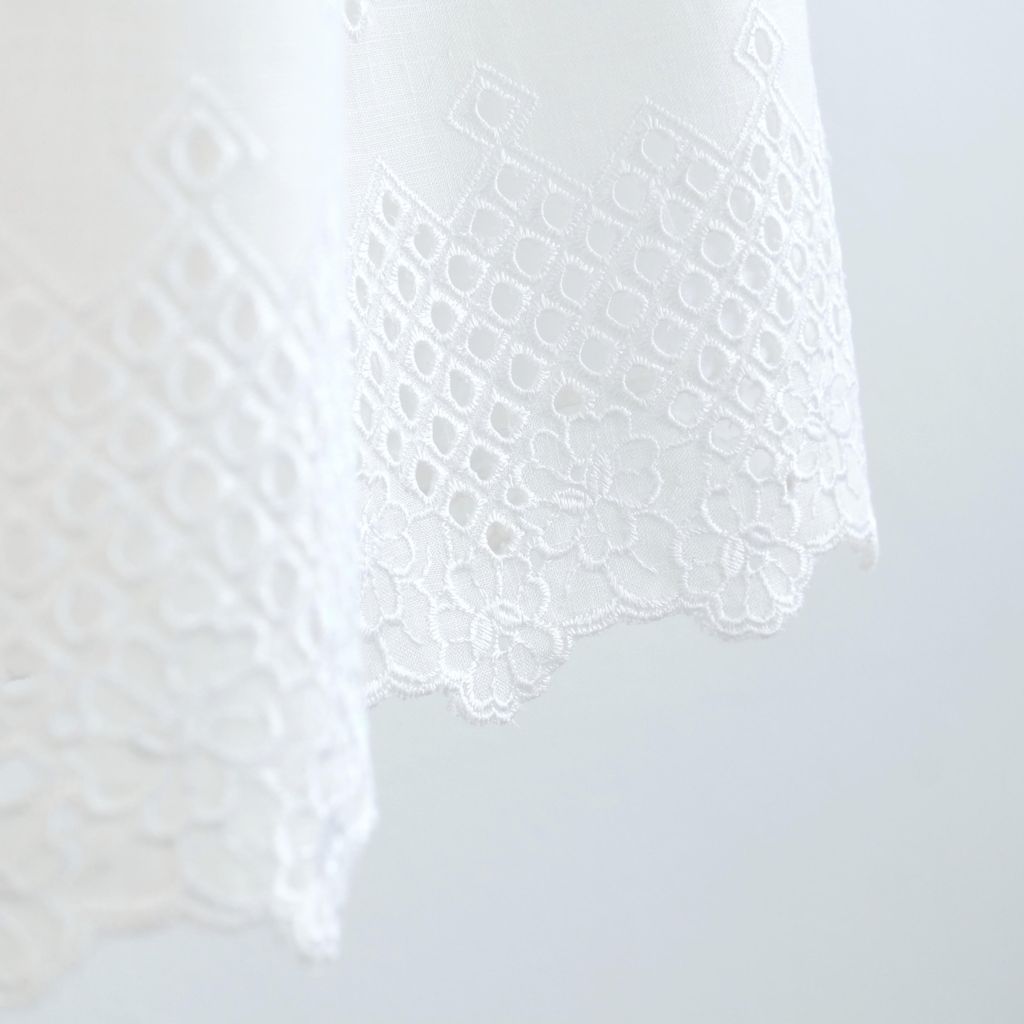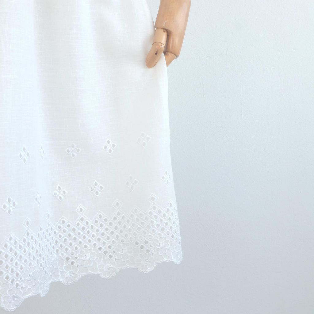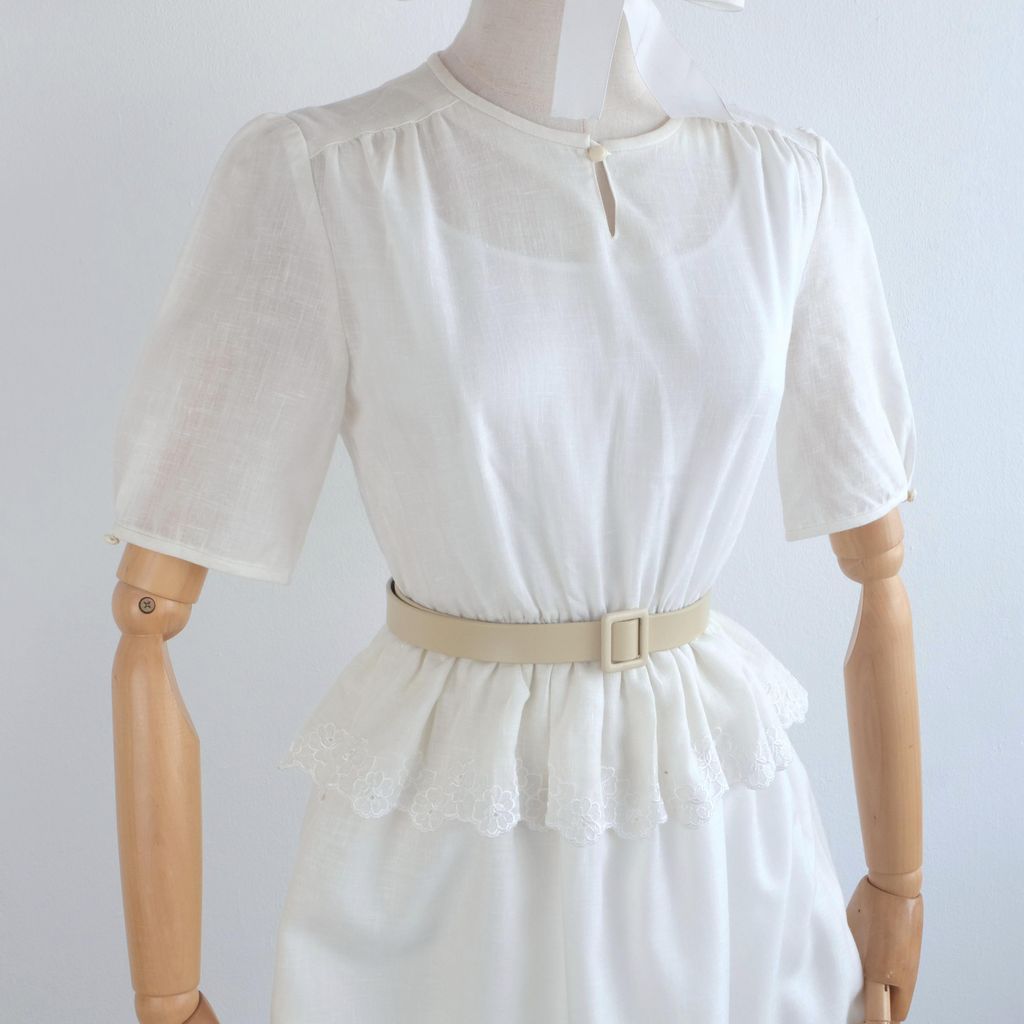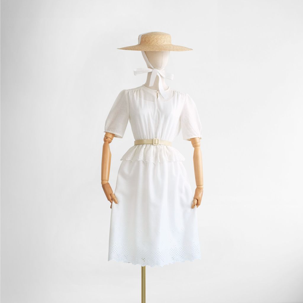 Circa 1980s. Romantic white colour lace embroidered dress.