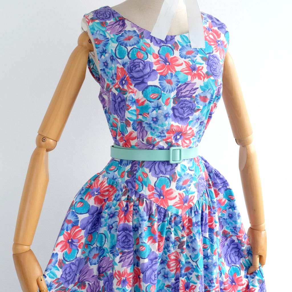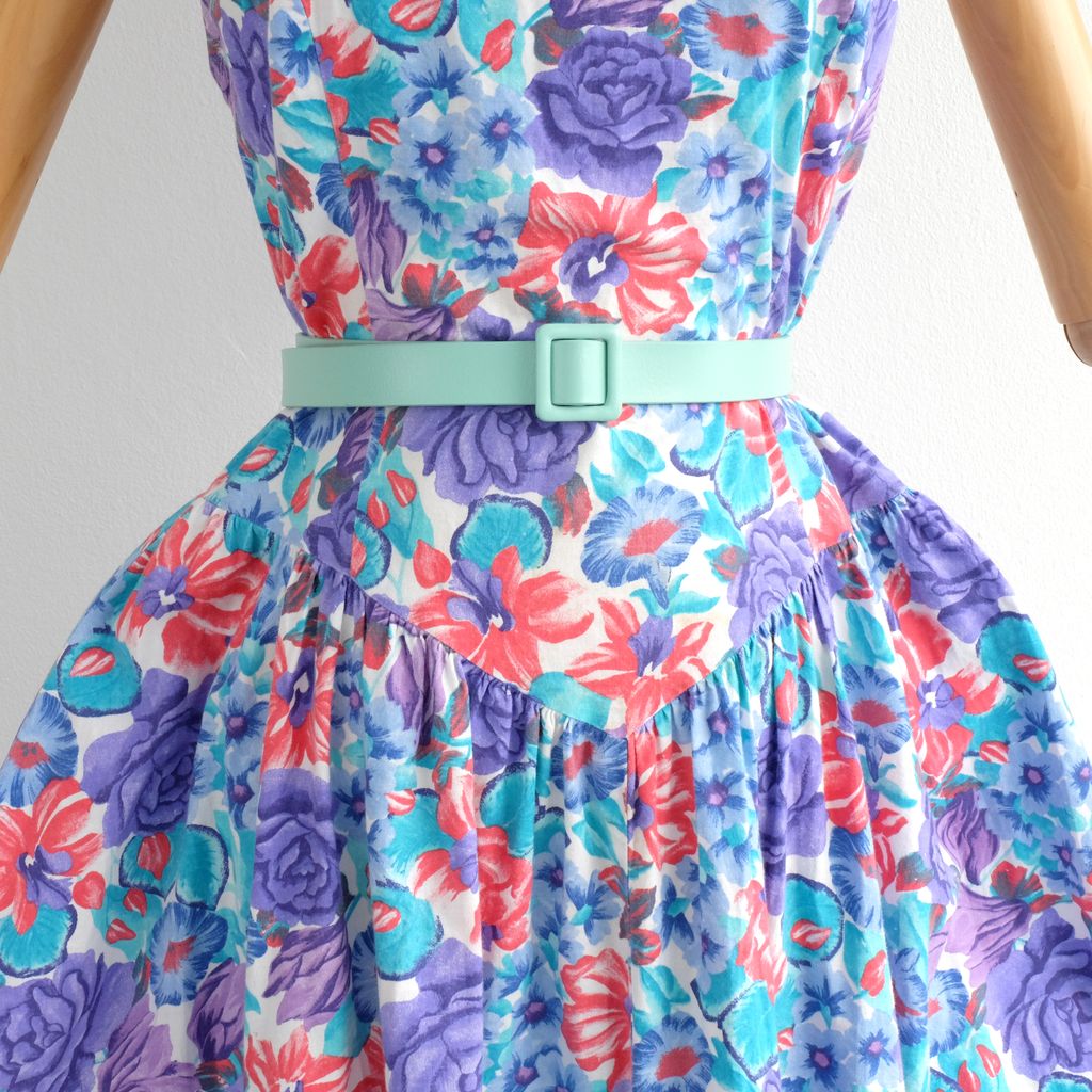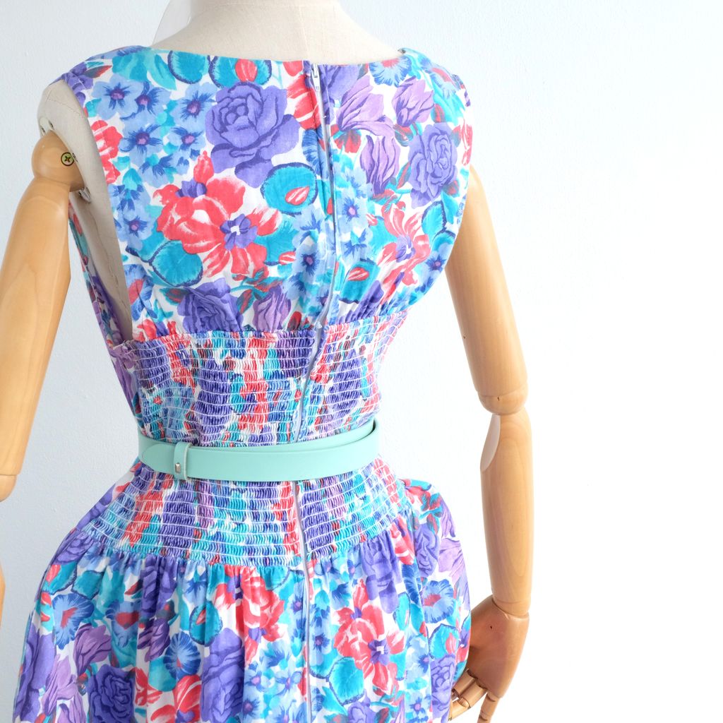 Back elastic details with zip closure, fitted drop V waist. Cotton fabric. Belt not included.