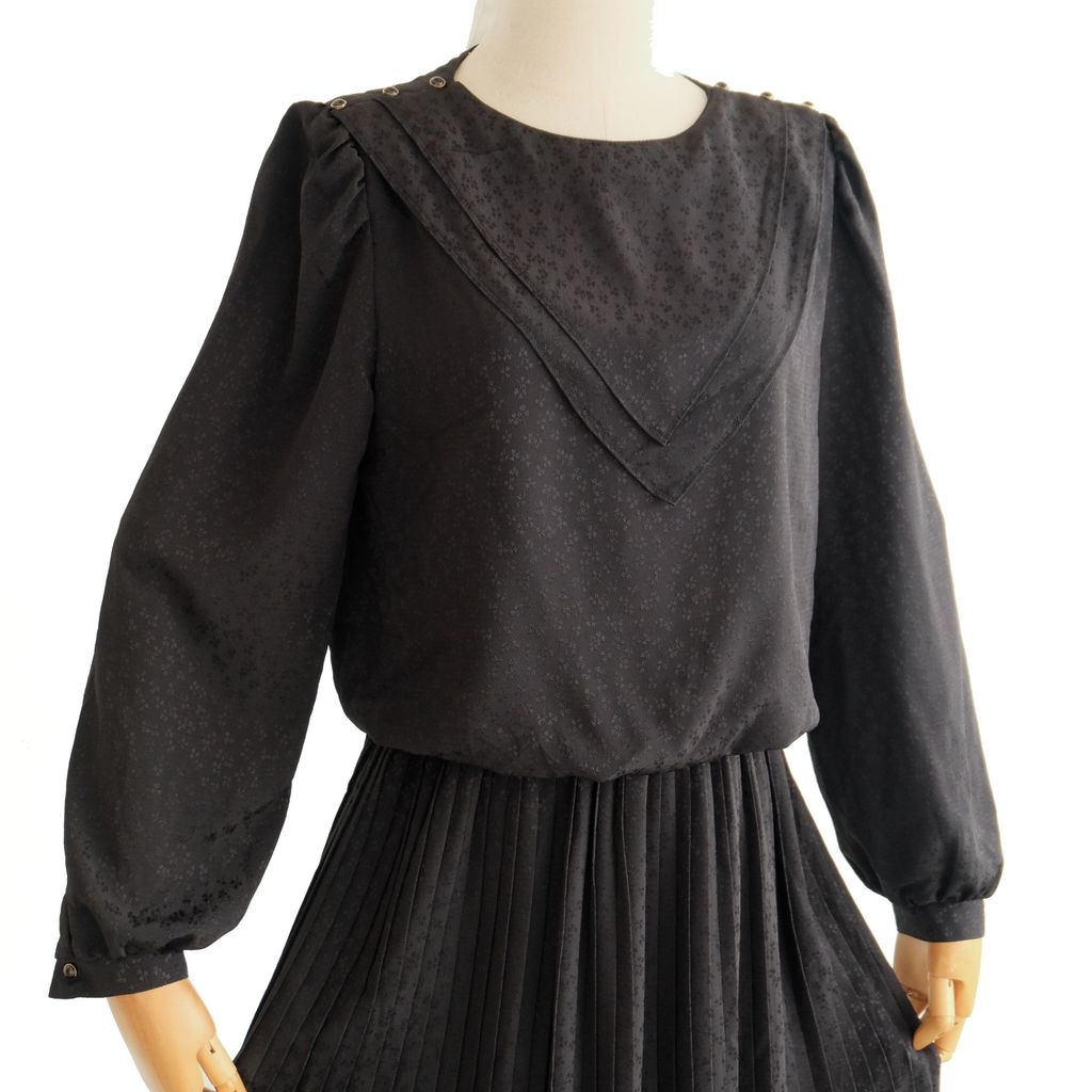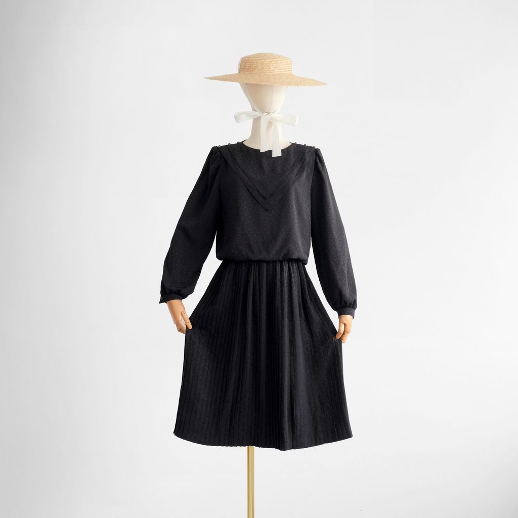 Circa 1980s. Classic black long sleeve dress.