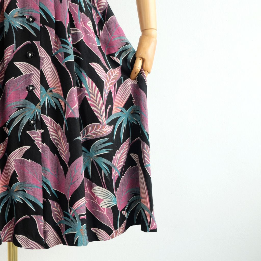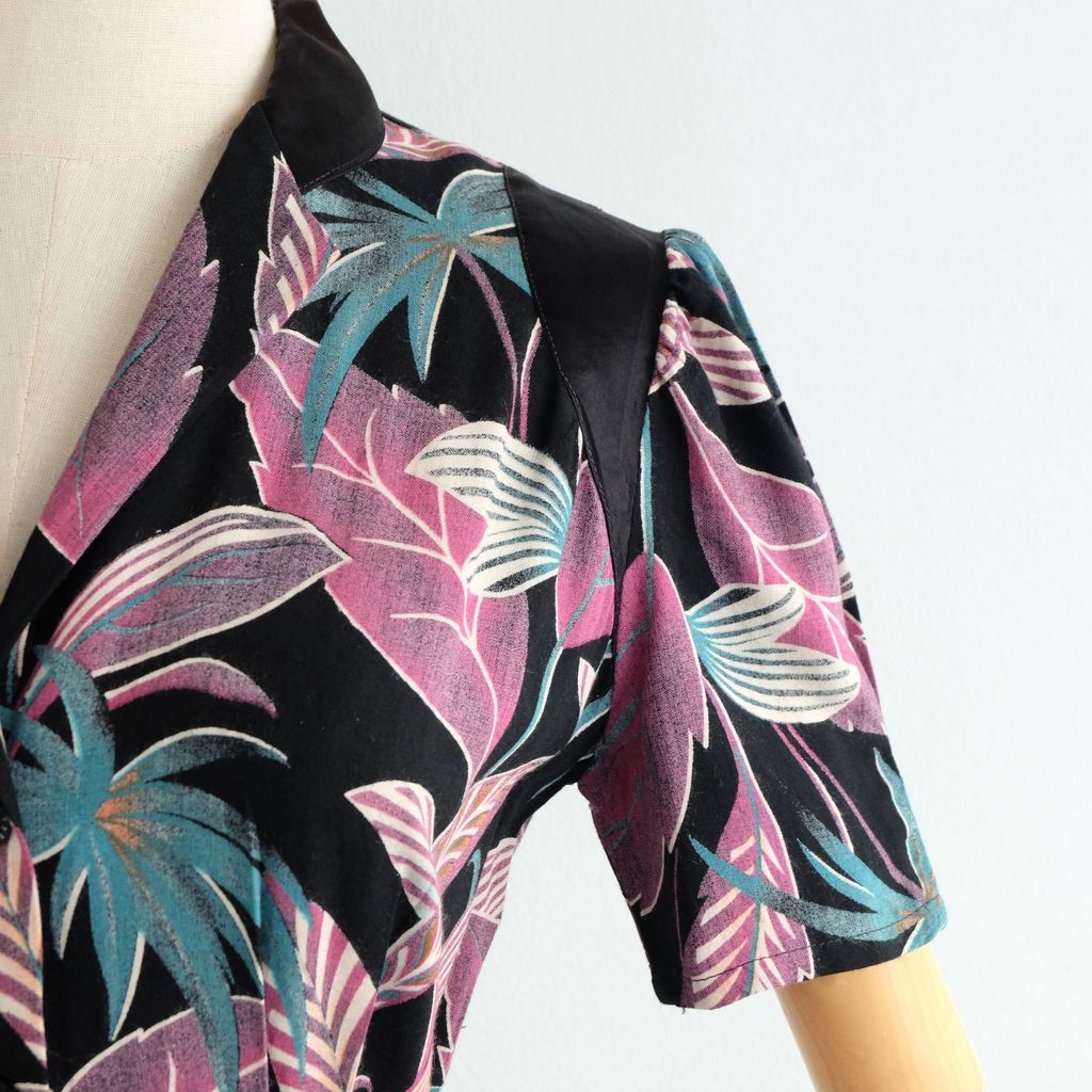 Functional buttons, fitted waist, pockets, belt not included, collar & shoulder area with satin finishes. Rayon fabric.