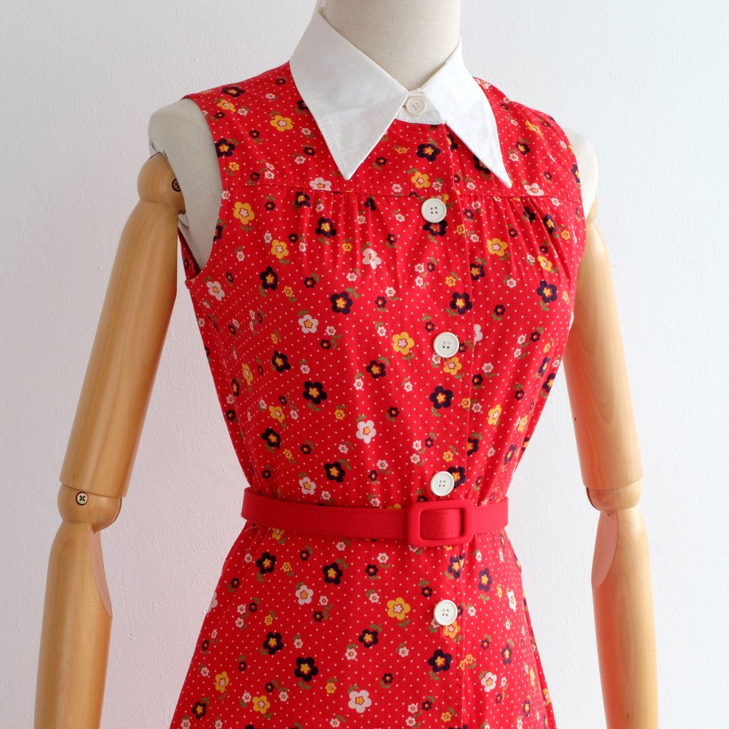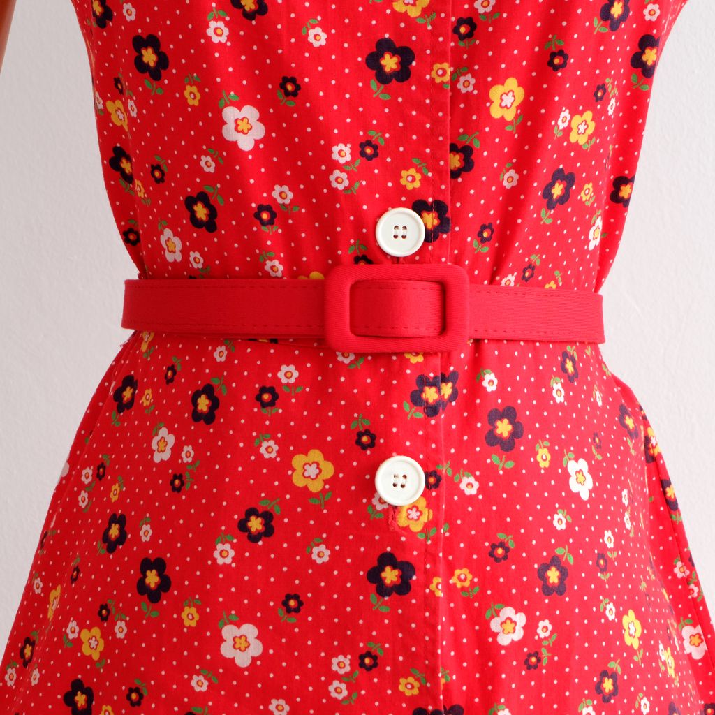 Front buttons closure, fitted waist. Cotton fabric.  Belt not included.