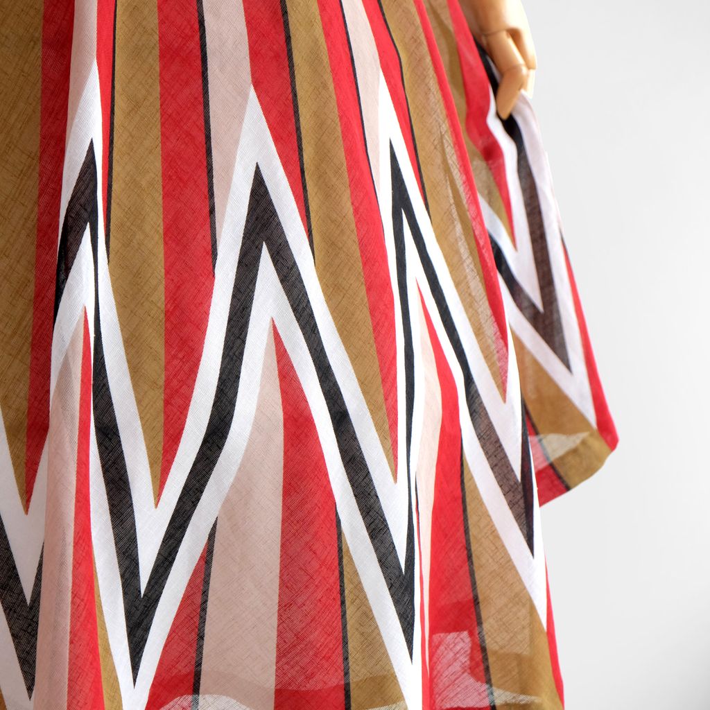 Half circle dress, back zip closure, elastic waist. Cotton linen fabric. Belt not included.