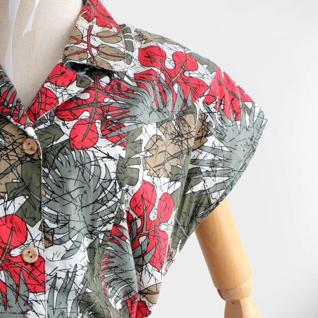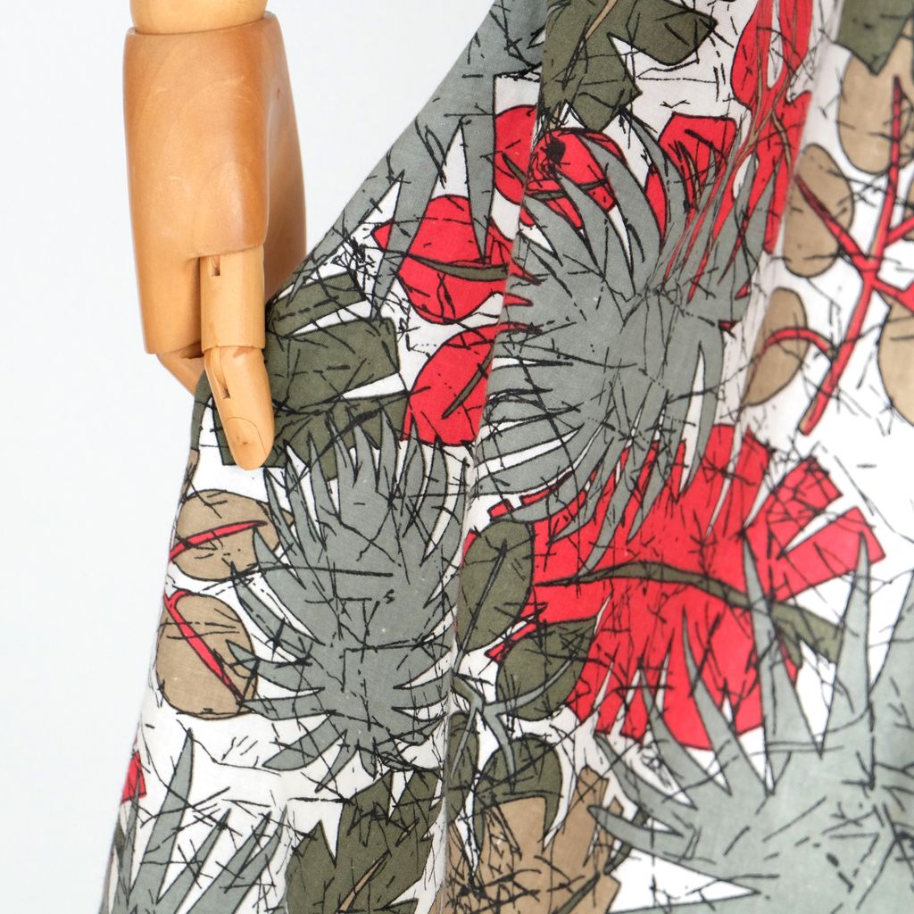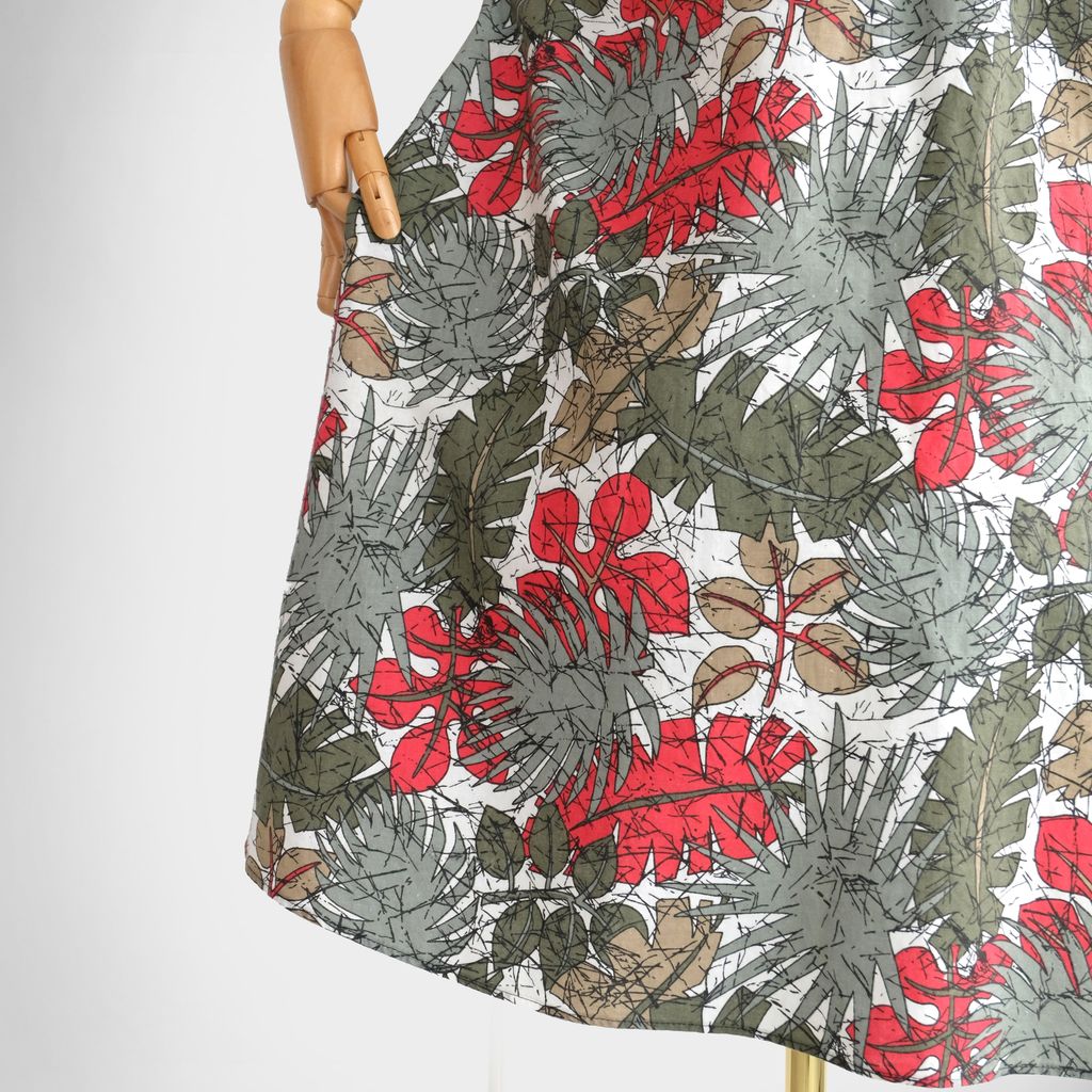 Front buttons closure, elastic waist. Cotton fabric. Belt not included.