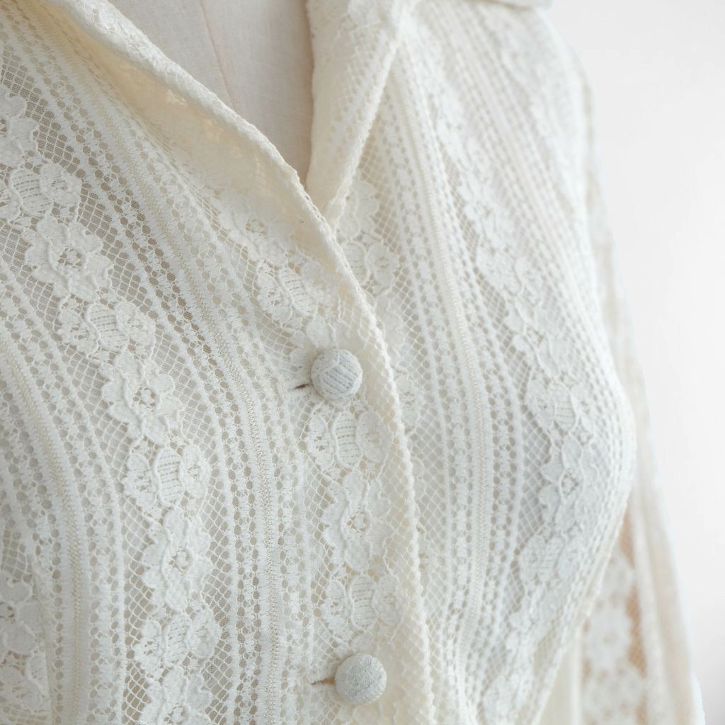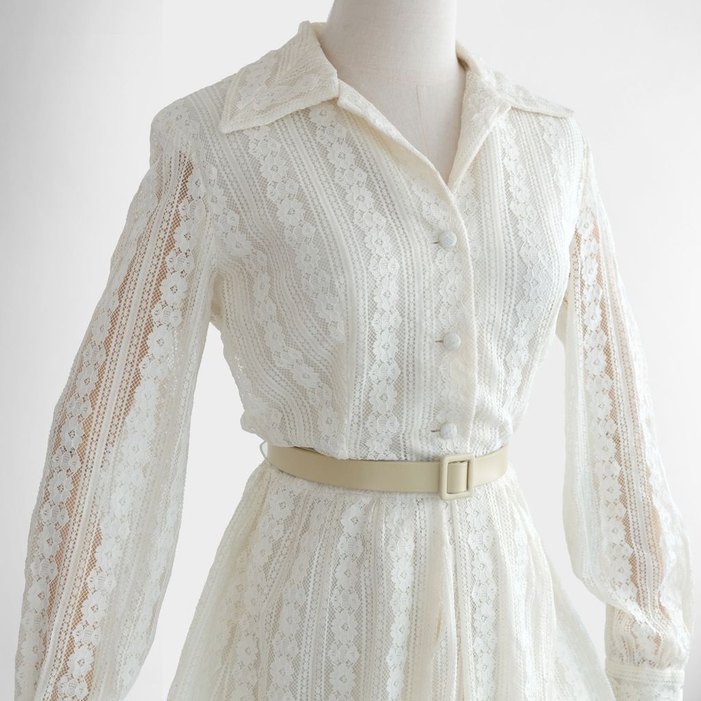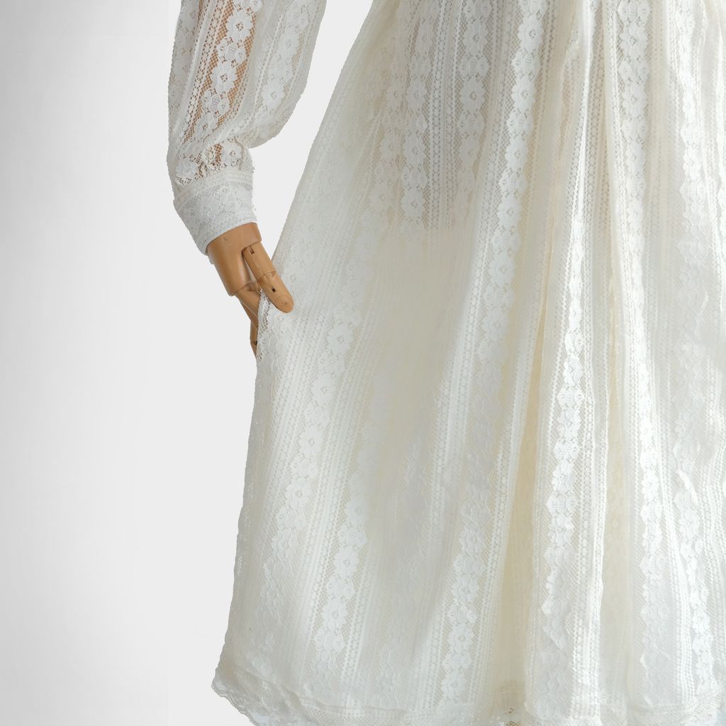 Circa 1970s. Exquisite ivory cream crochet dress.