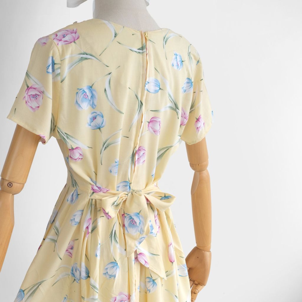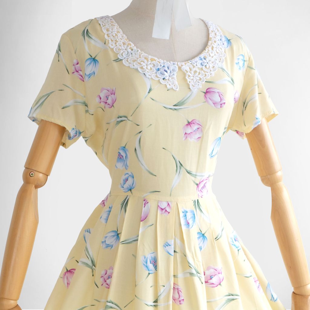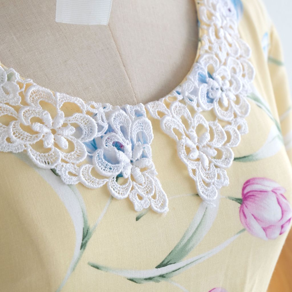 Lace embroidered collar design. Come with waistband to cinch at the back. Fitted waist. Back zip closure. Rayon fabric.