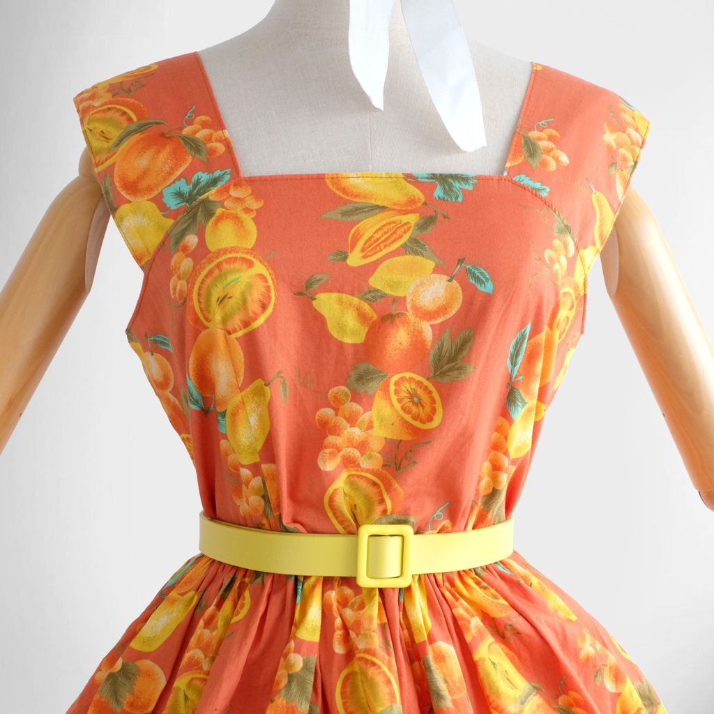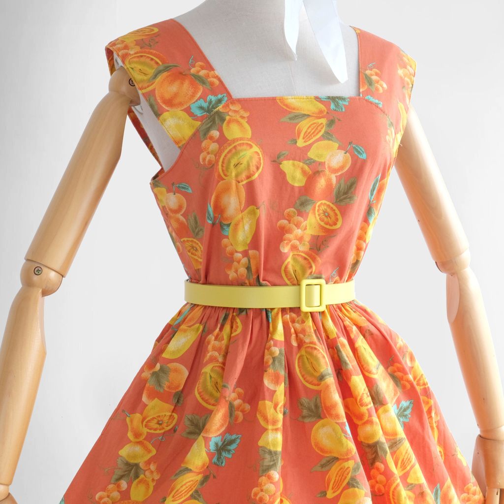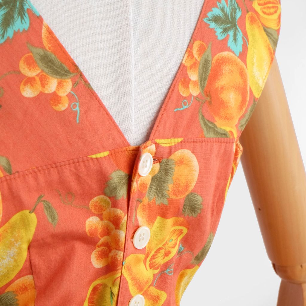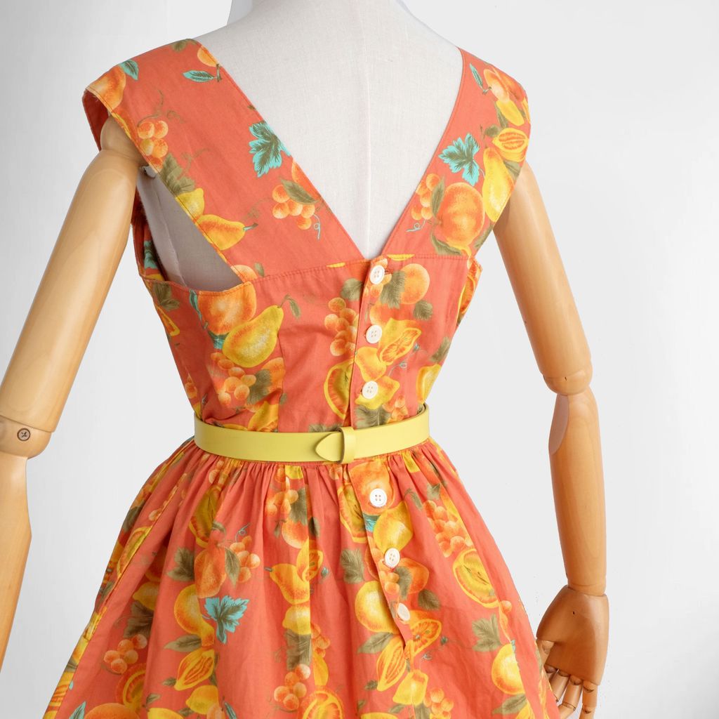 Square neckline. Back buttons closure. Fitted waist. Cotton fabric. With pockets. Belt not included