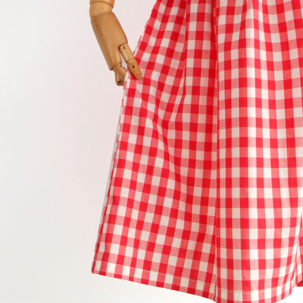 Front buttons closure, elastic waist, mini chest pocket, belt not included. Cotton fabric.
