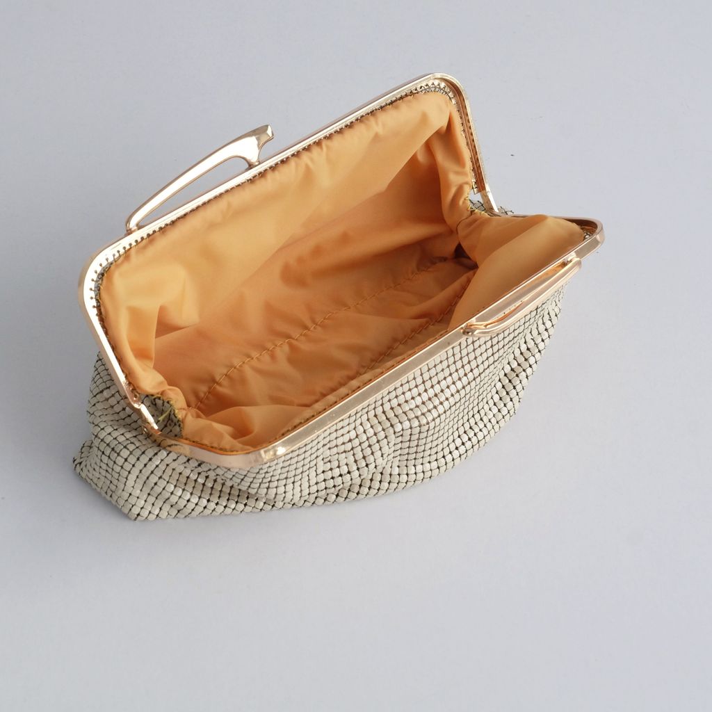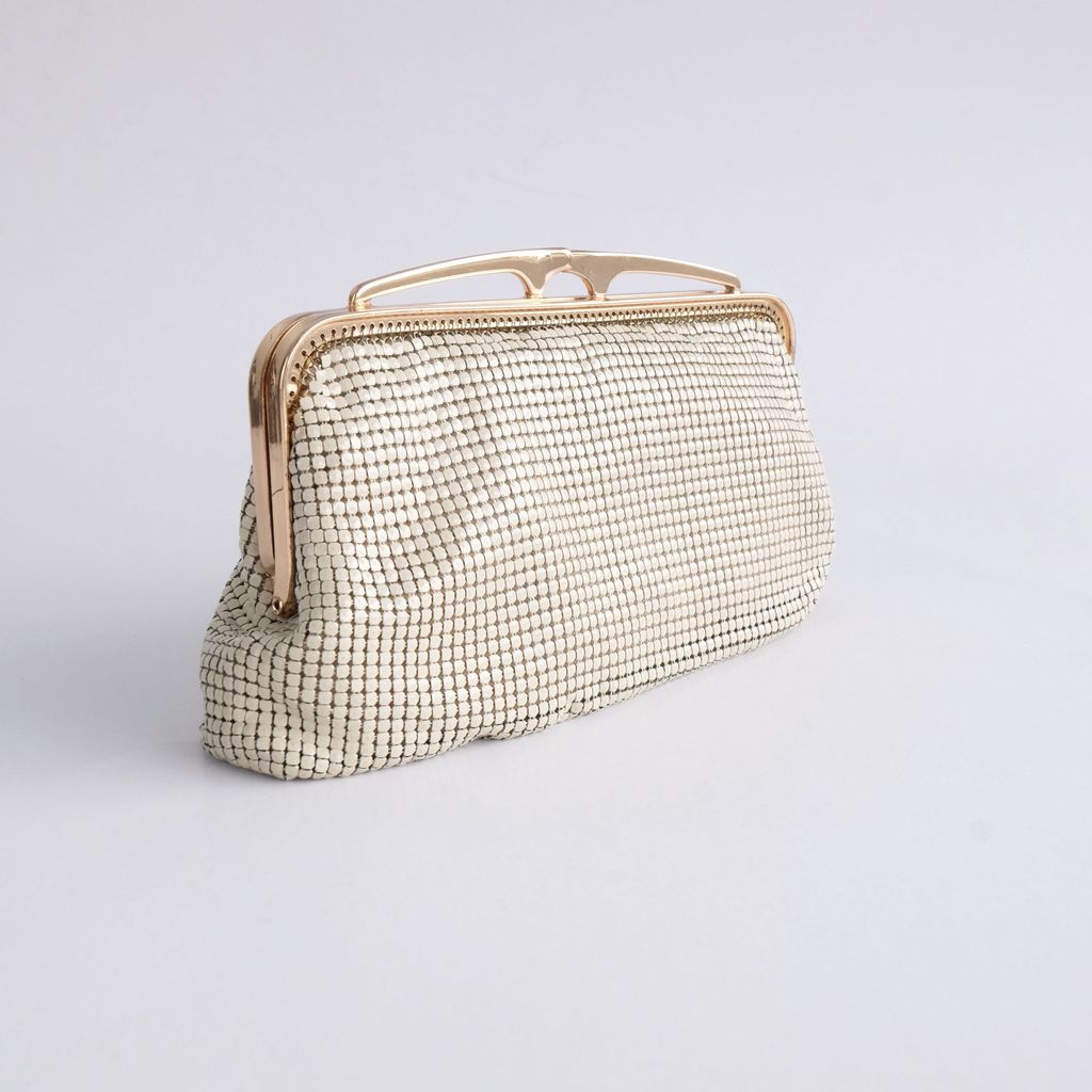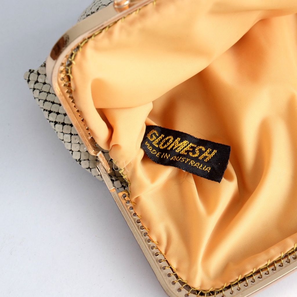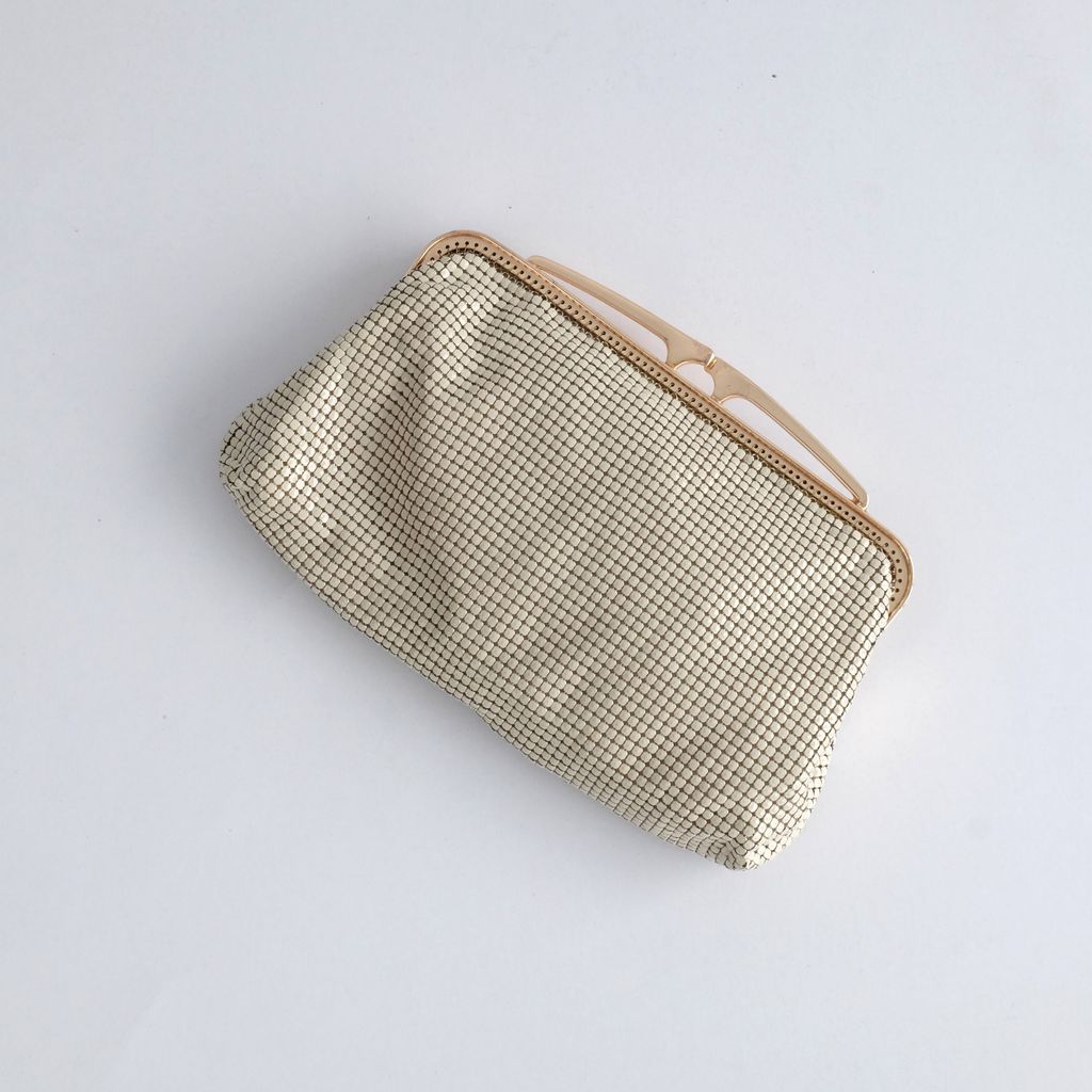 Circa 1970s. Original Vintage Glomesh cream metal mesh clutch.