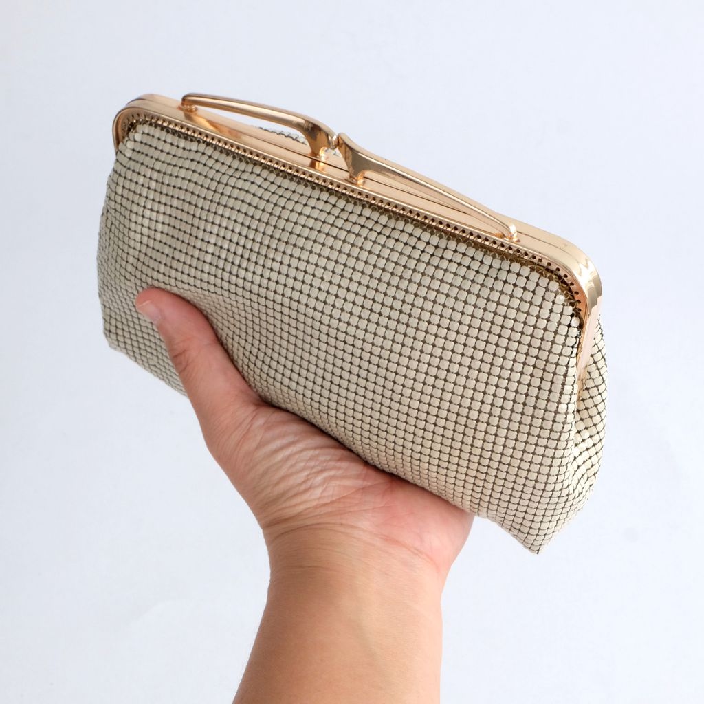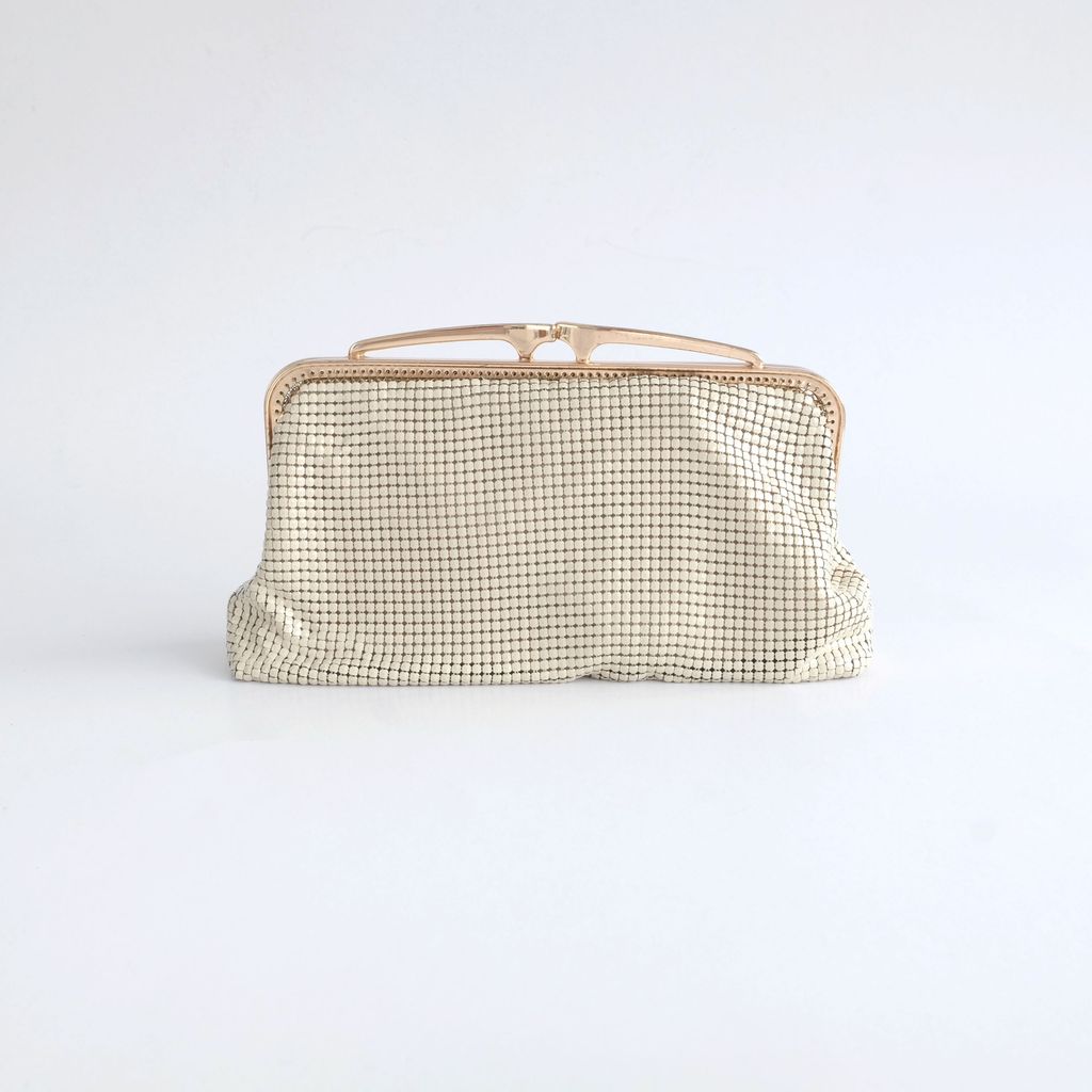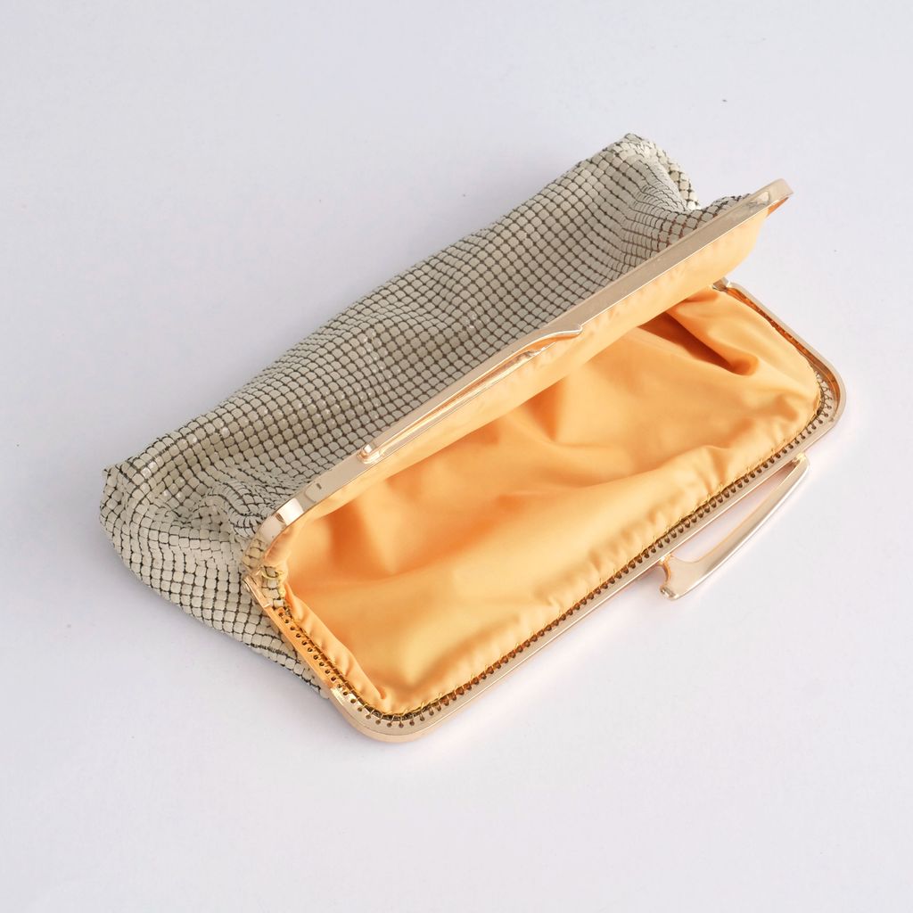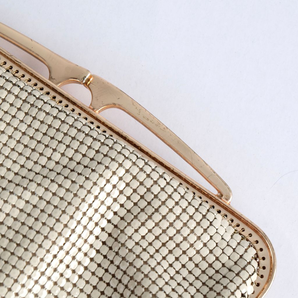 Circa 1970s. Original Vintage Glomesh cream metal mesh clutch.