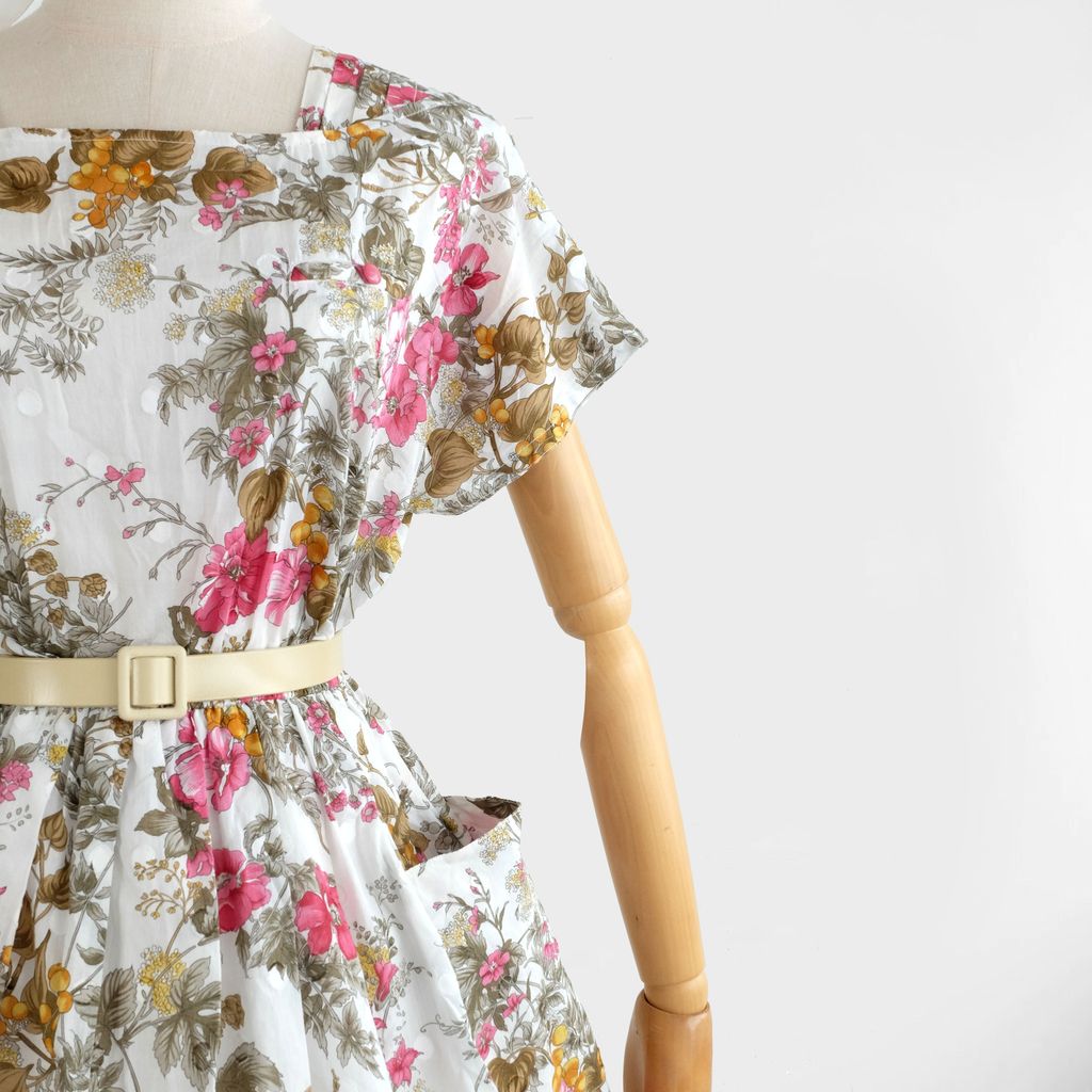 Square neckline with pleated details. Mini chest pocket. Back zip closure. Elastic waist. Cotton fabric. With pockets. Belt not included