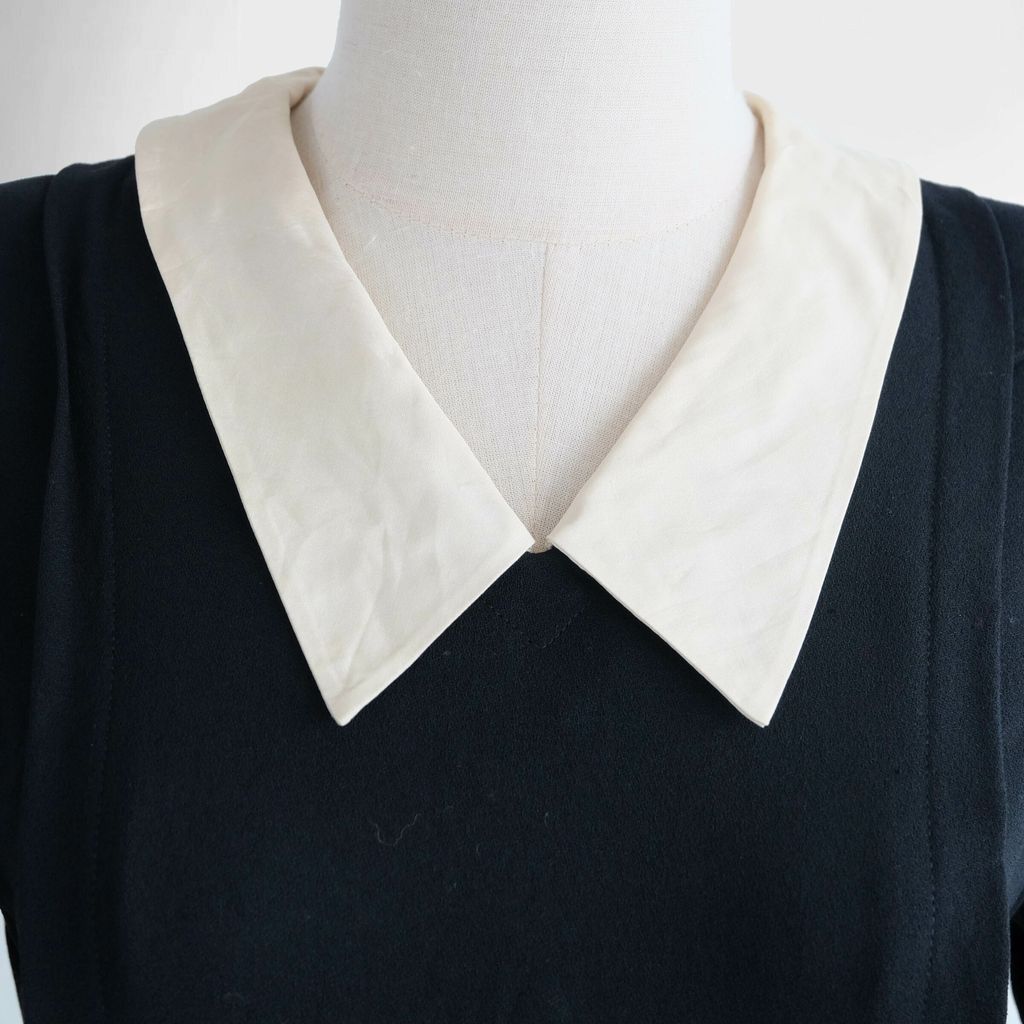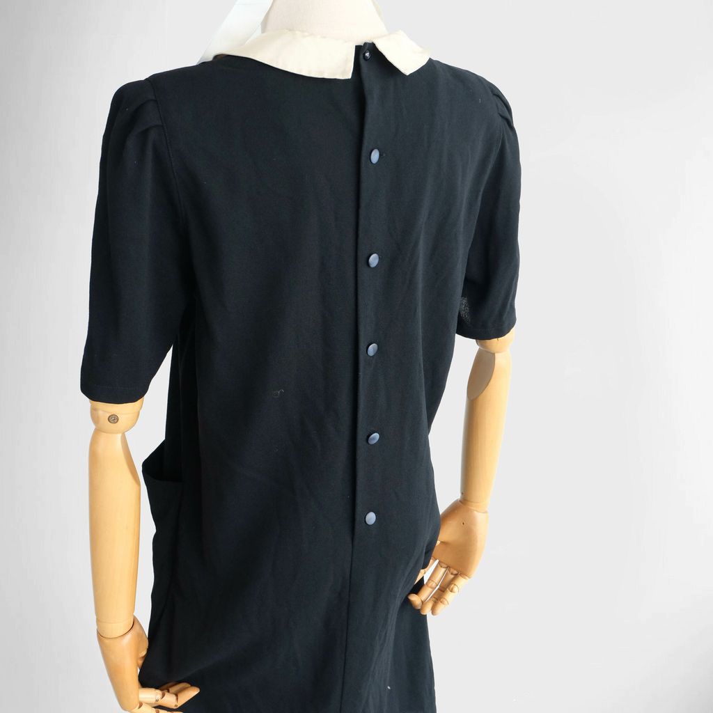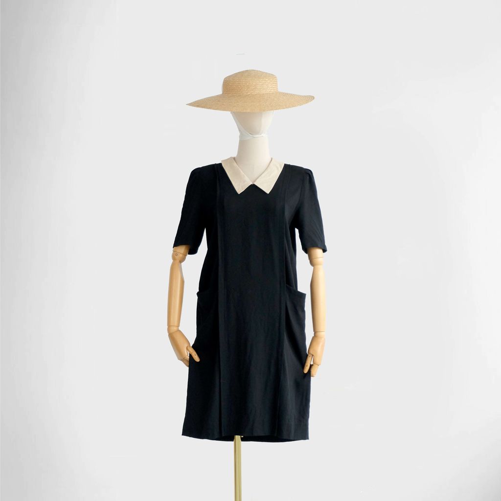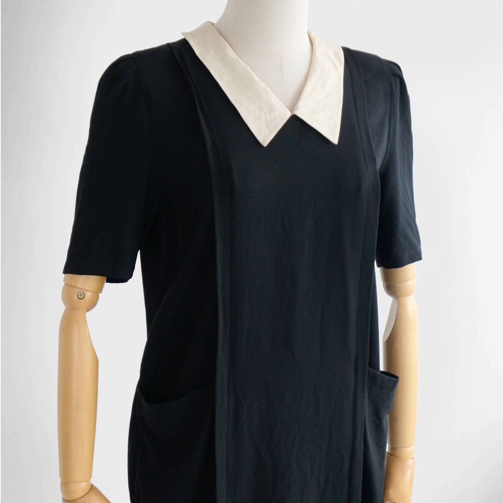 Circa 1980s. Classic black dress with cream white collar.