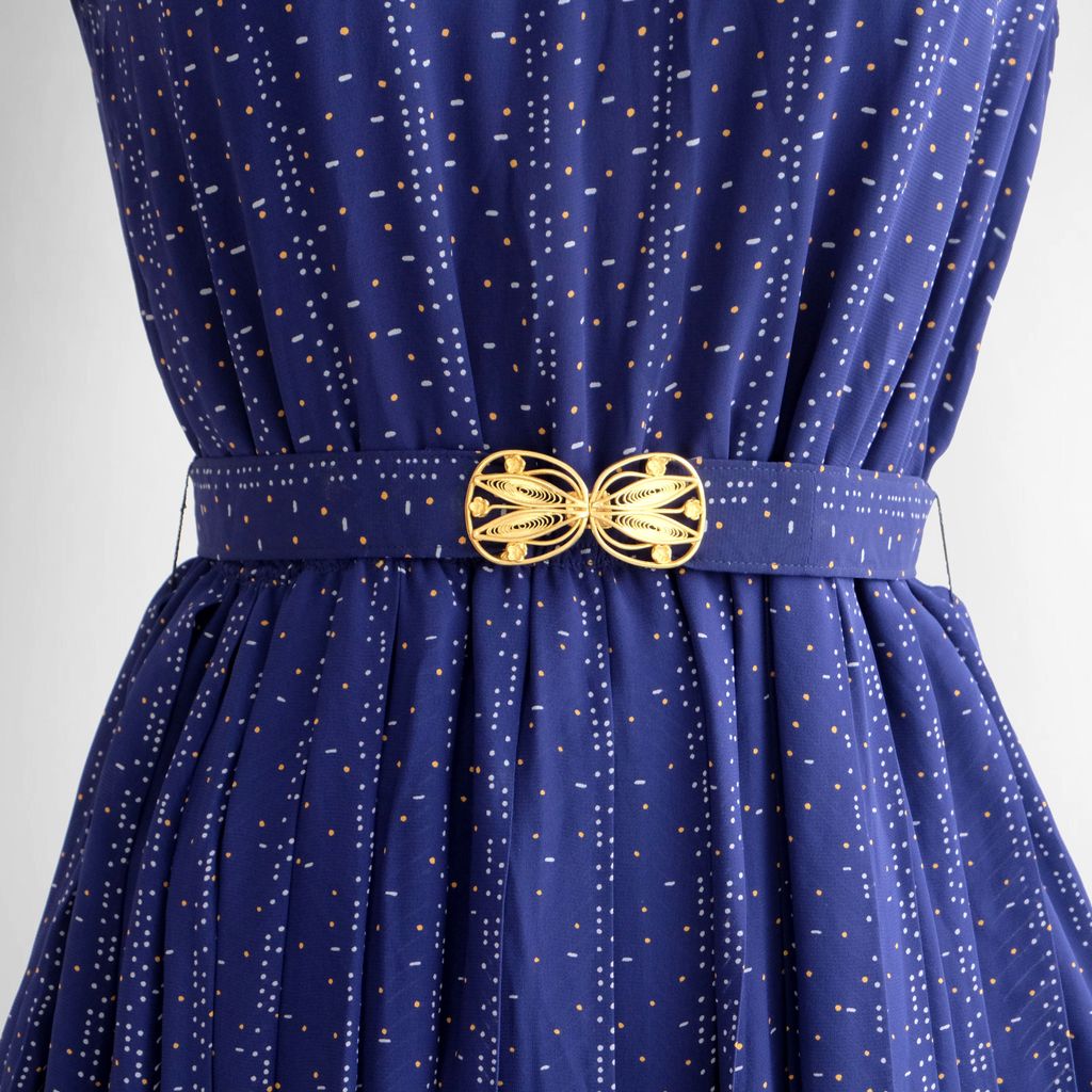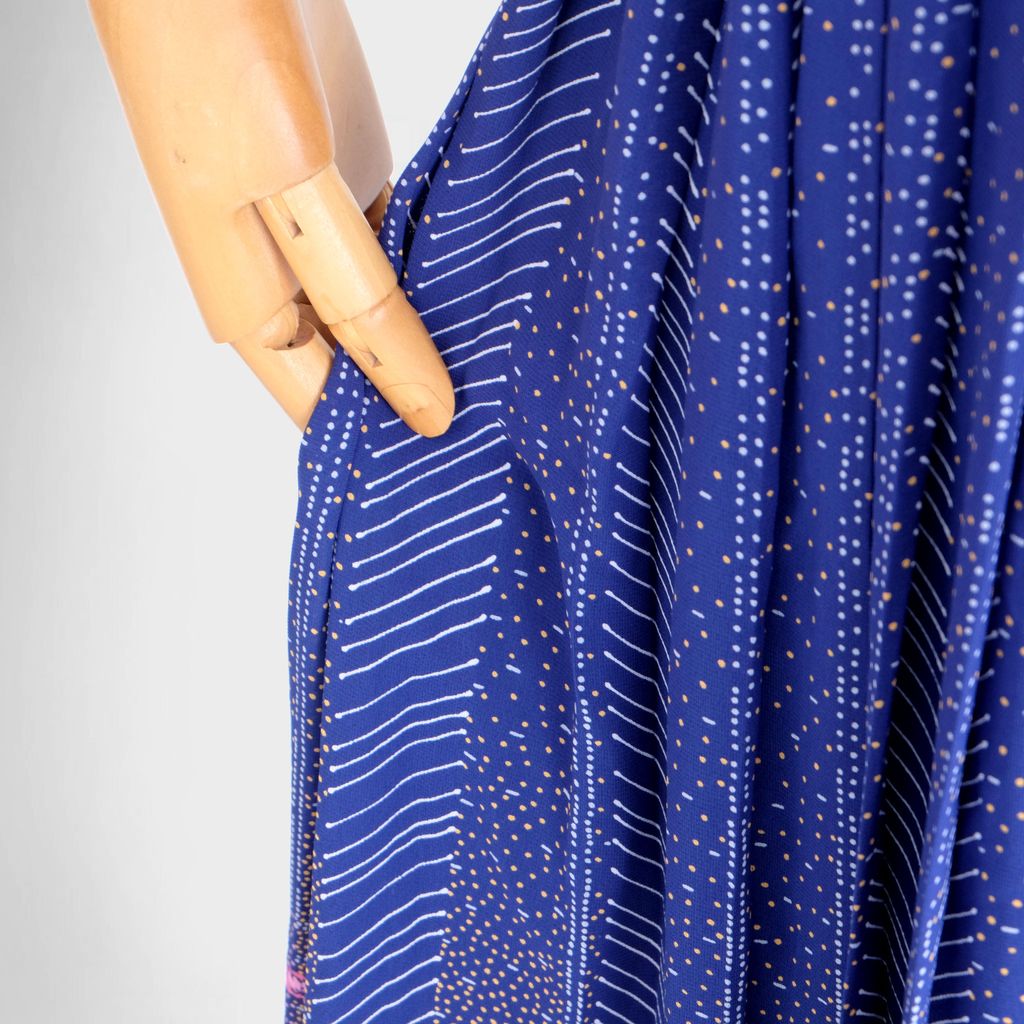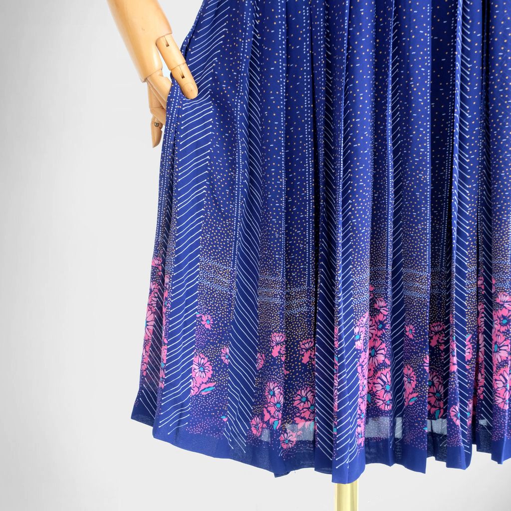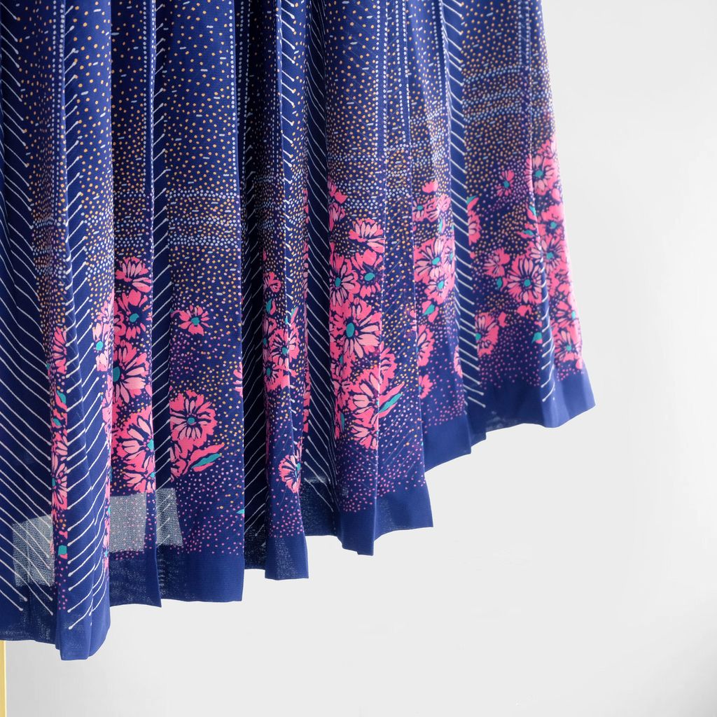 Circa 1980s. Sweet navy blue dress with pink florals print.