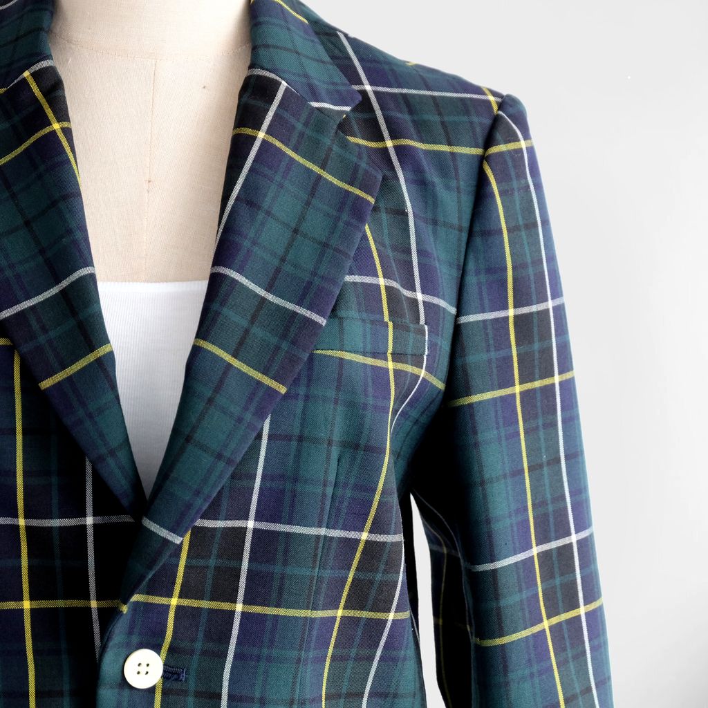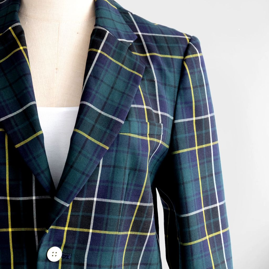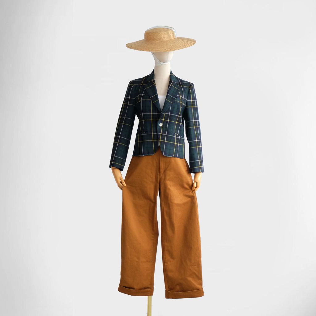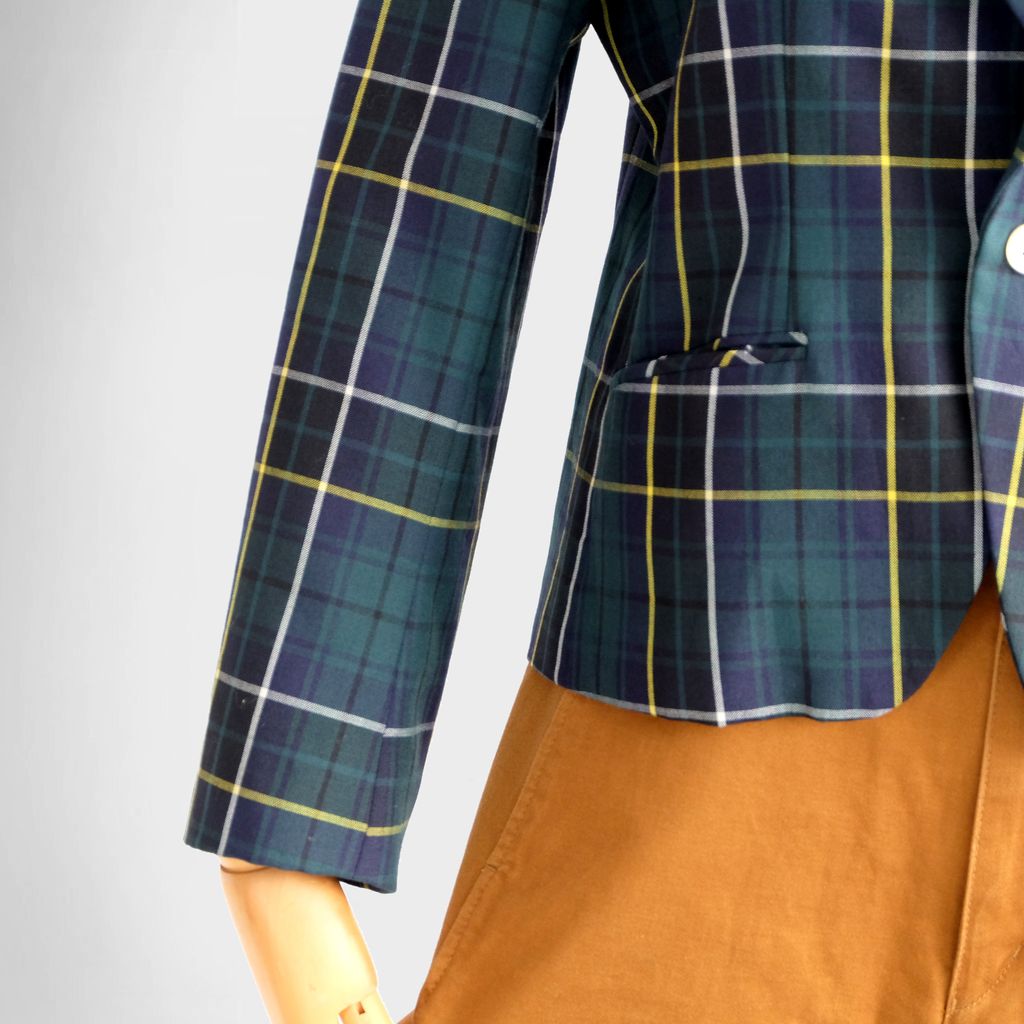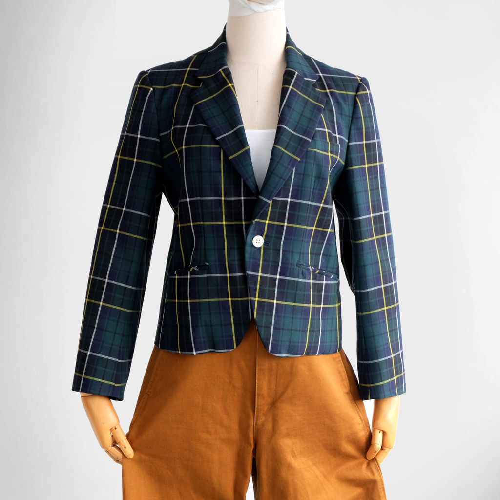 Circa 1980s. Dark Green Blue blazer with checkered print.