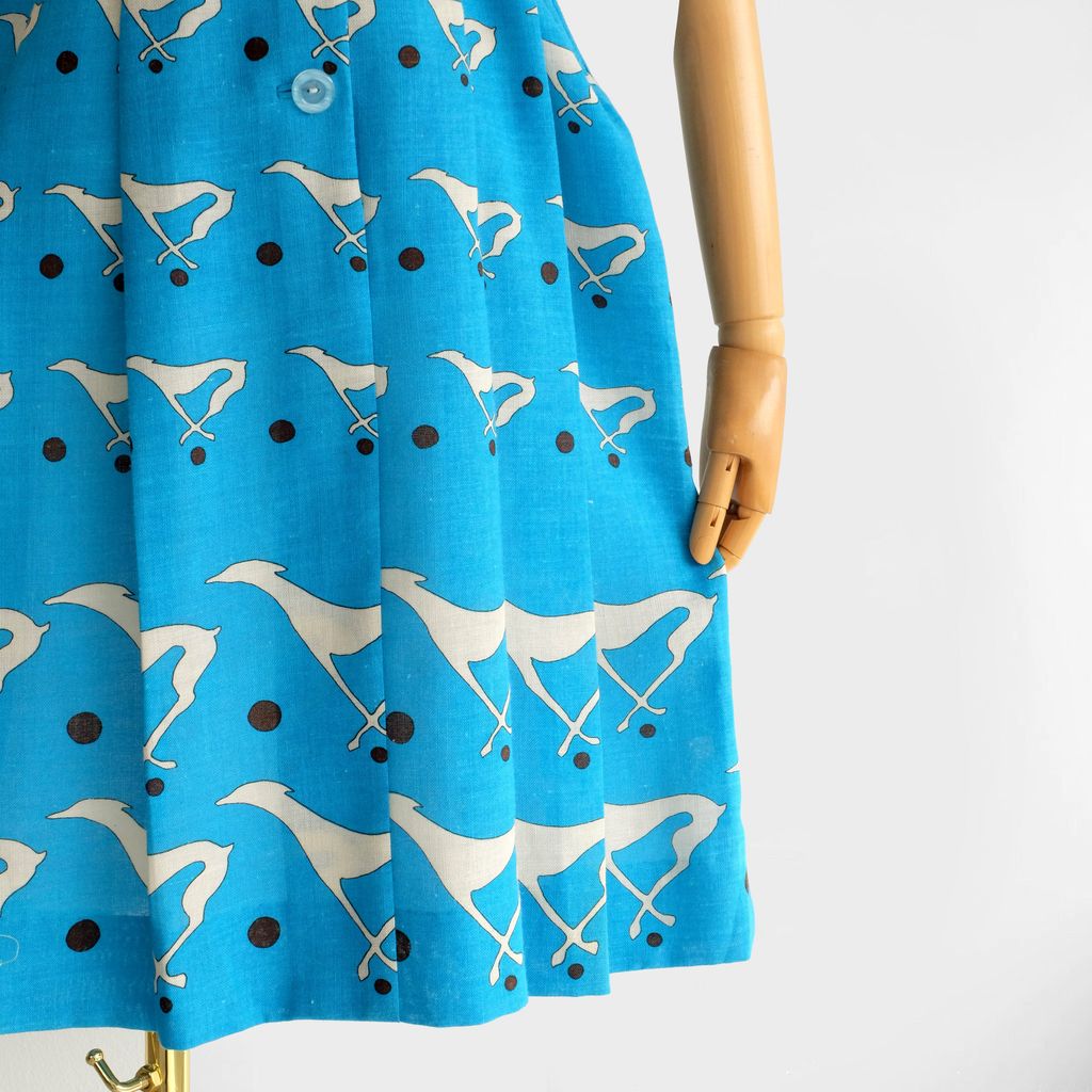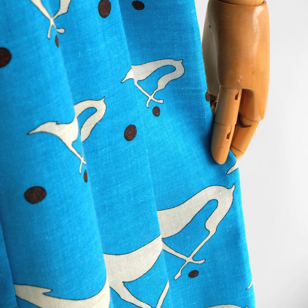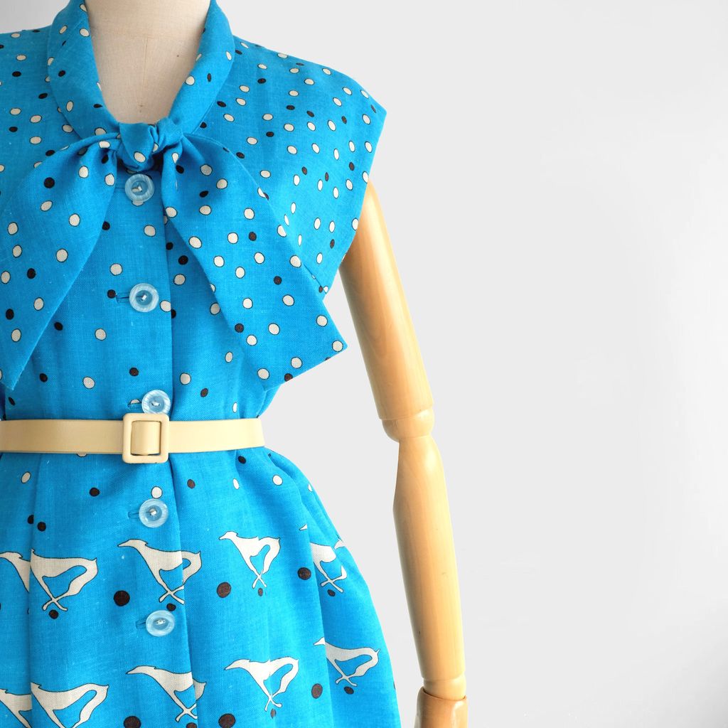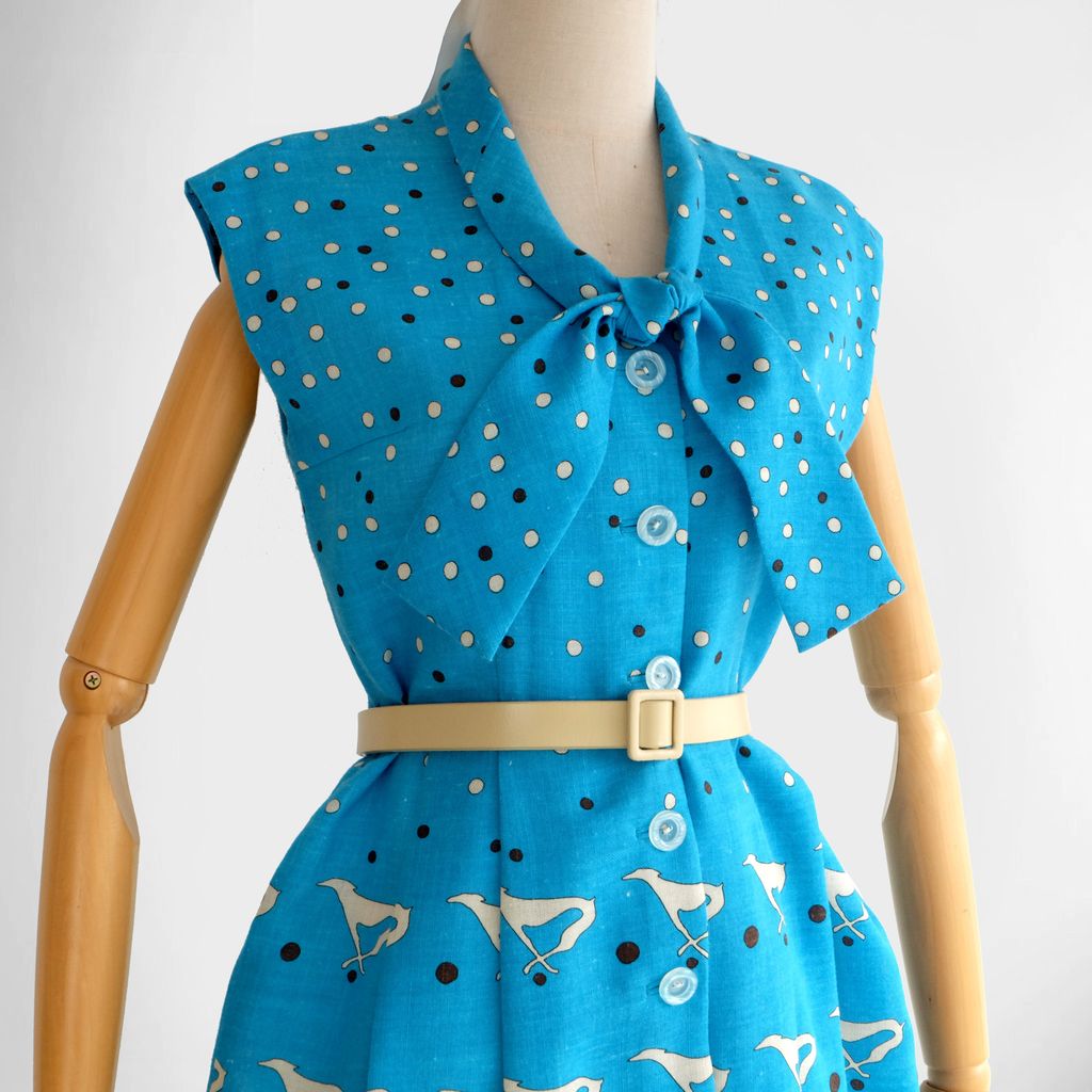 Front buttons closure. Pleated skirt. Shawl neckline with bow. Fixed waist. Belt excluded. Cotton fabric.