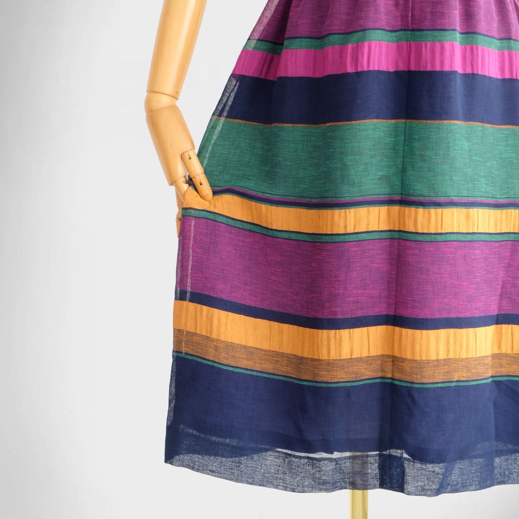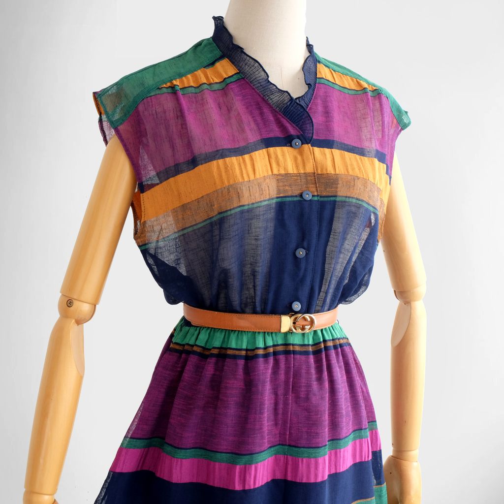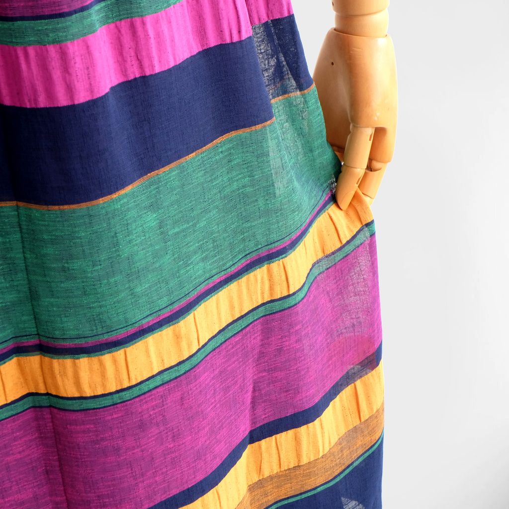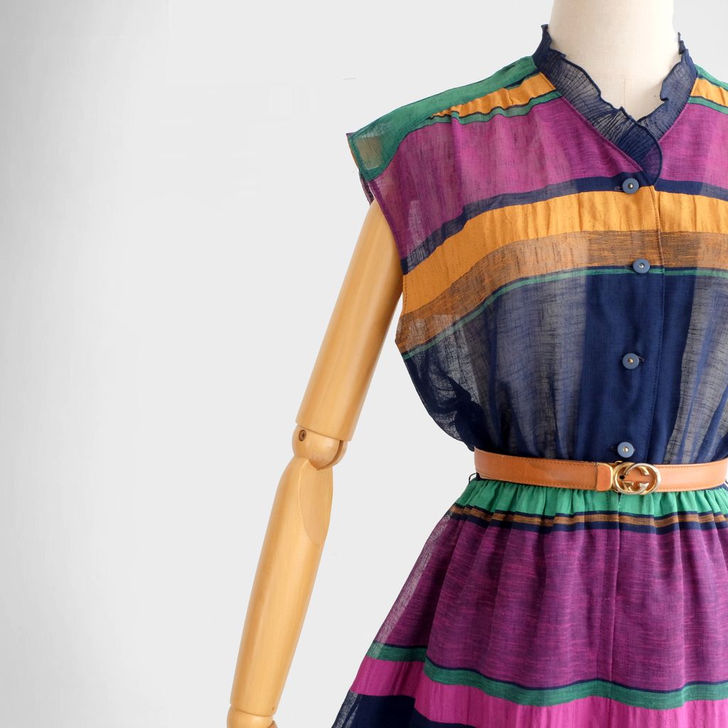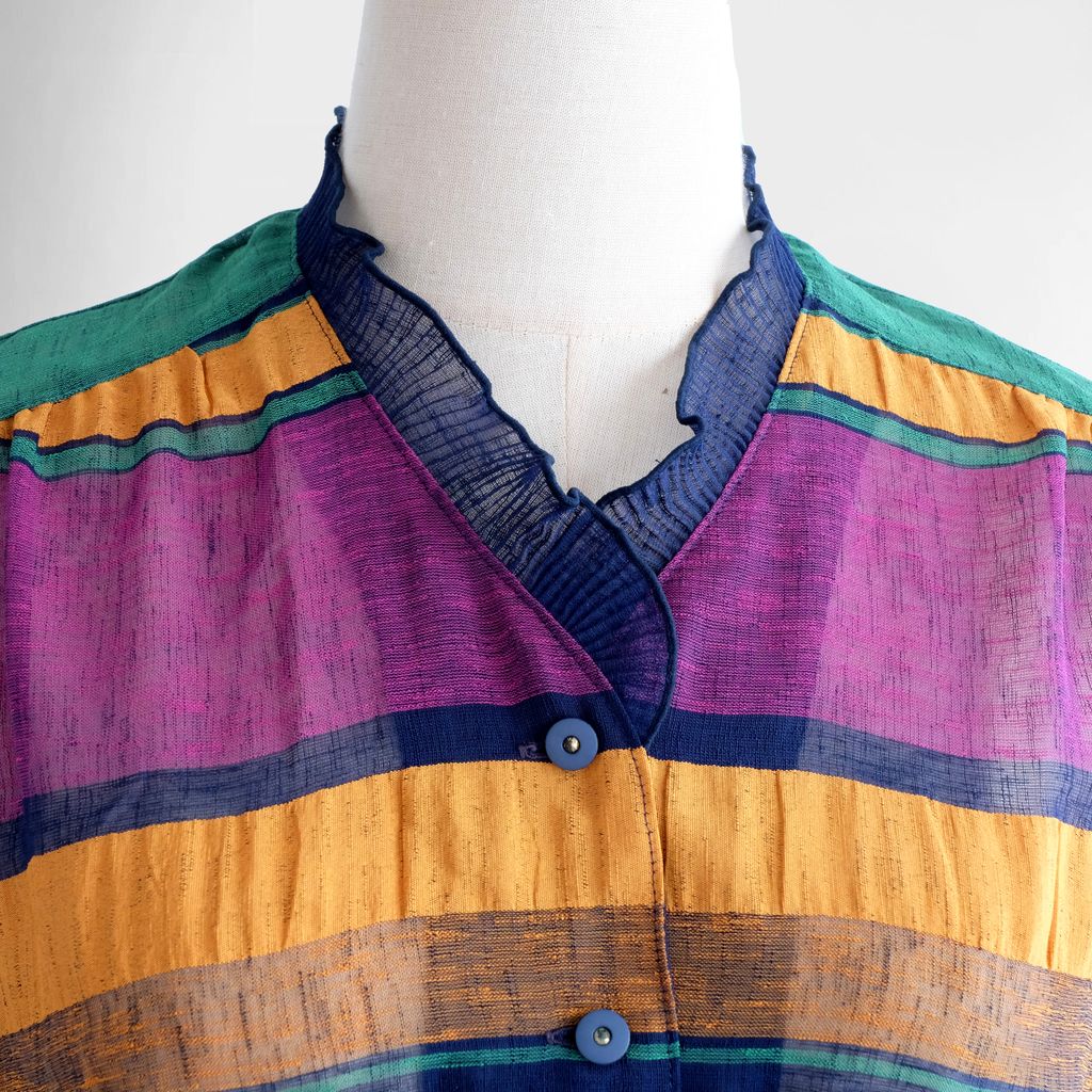 Ruffle collar. Front buttons closure. Elastic waist with zip closure.  Belt excluded. Linen fabric. Bottom Lined.