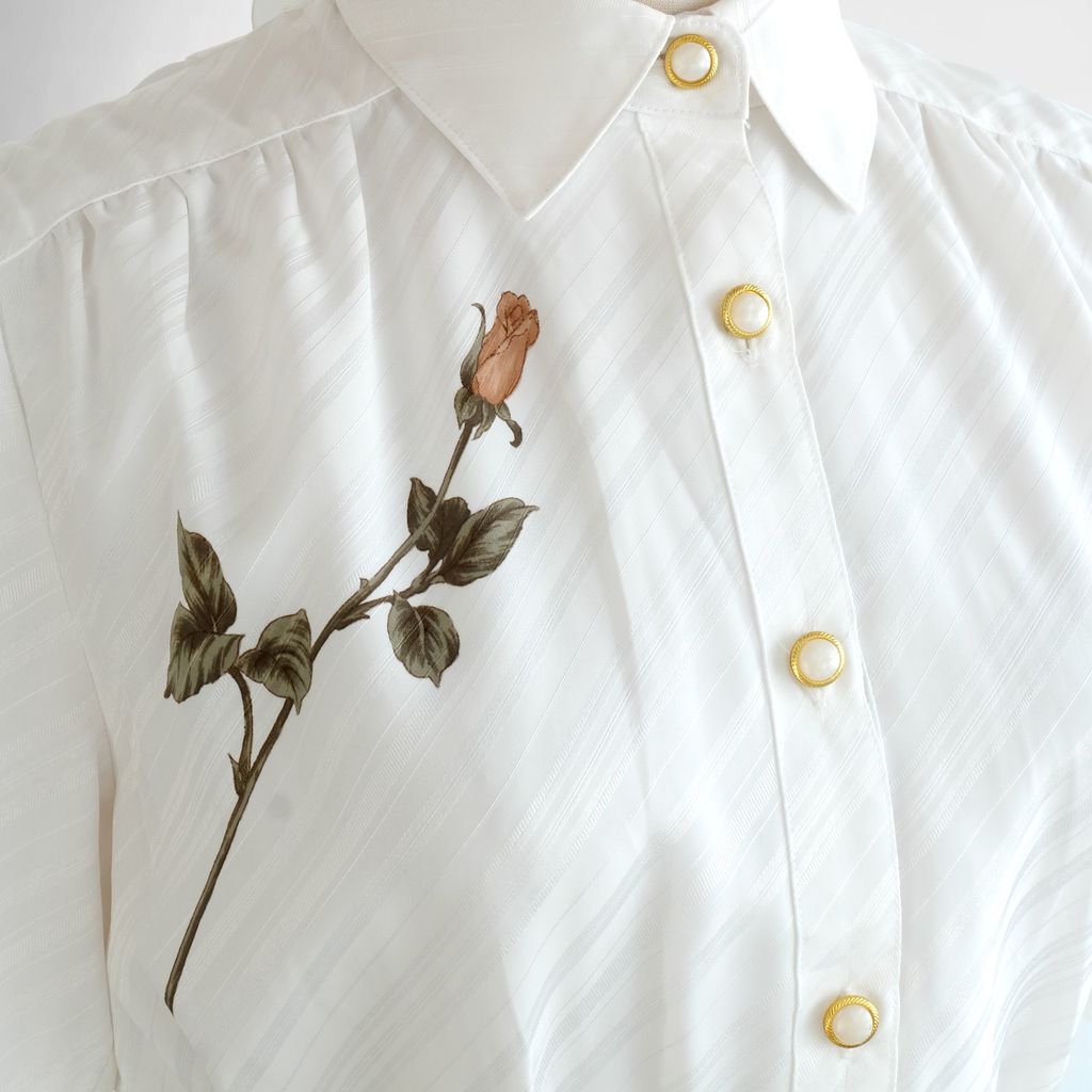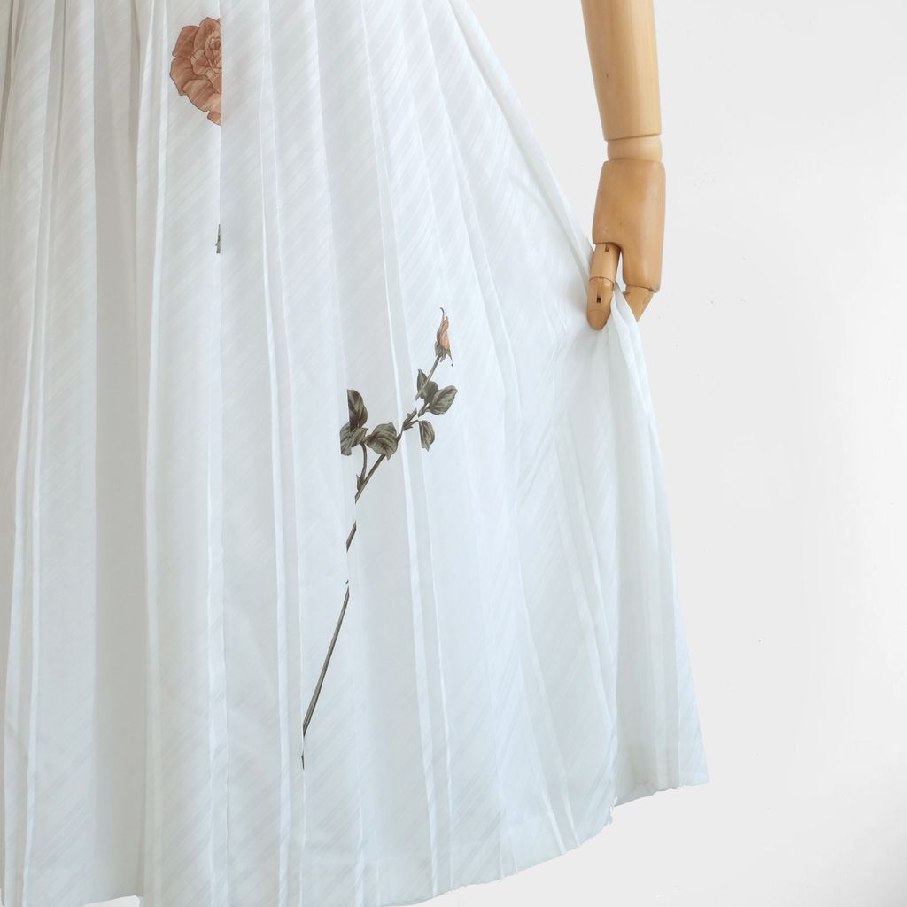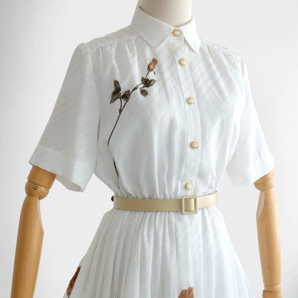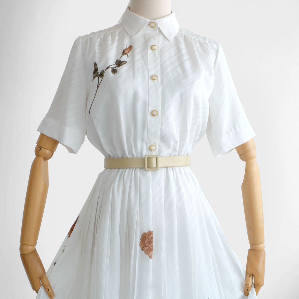 Circa 1980s. Beautiful ceram white dress with roses print.