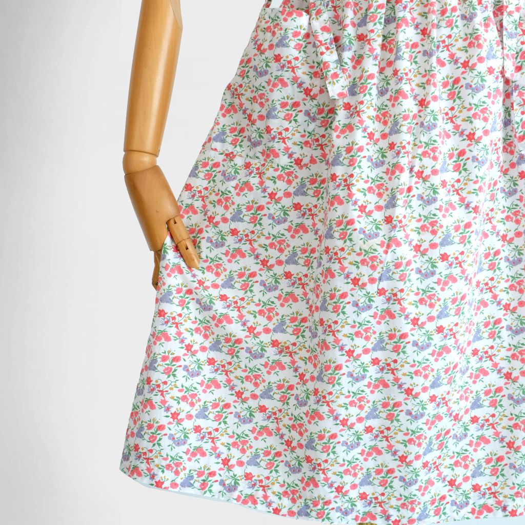 Front buttons closure. Waistband to cinch from both side. Fixed waist. Pockets. Cotton fabric.