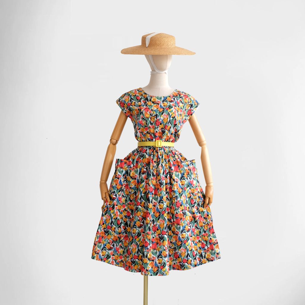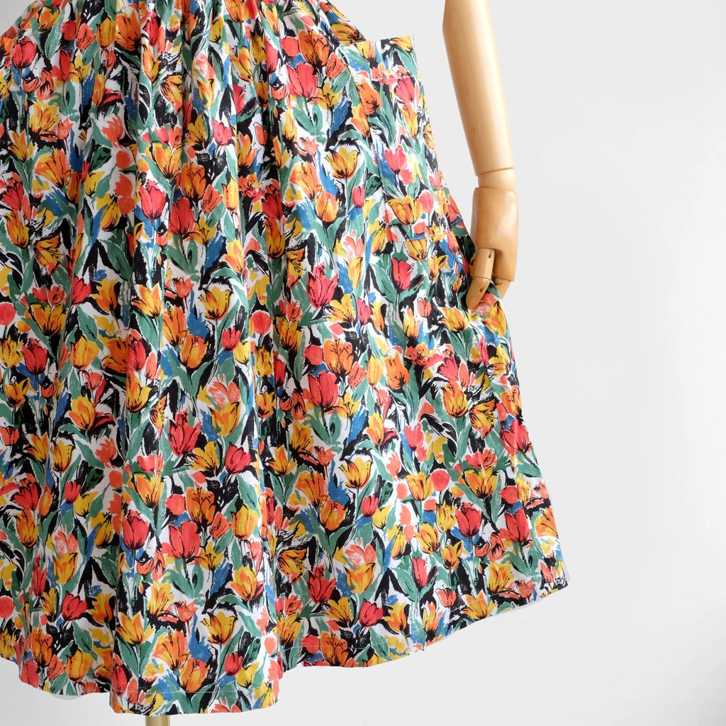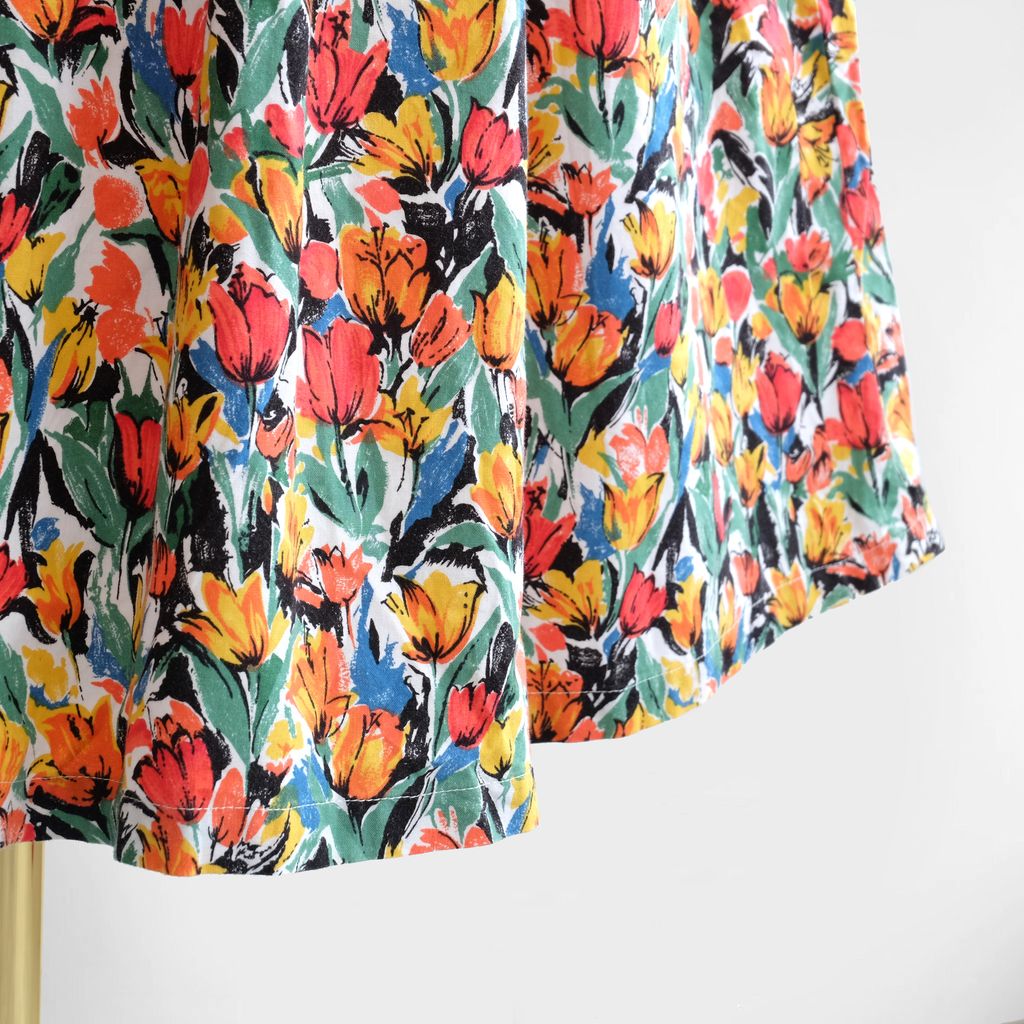 Back buttons closure. Elastic waist. Unined. Pockets. Puffy skirt. Cotton fabric. Belt not included.