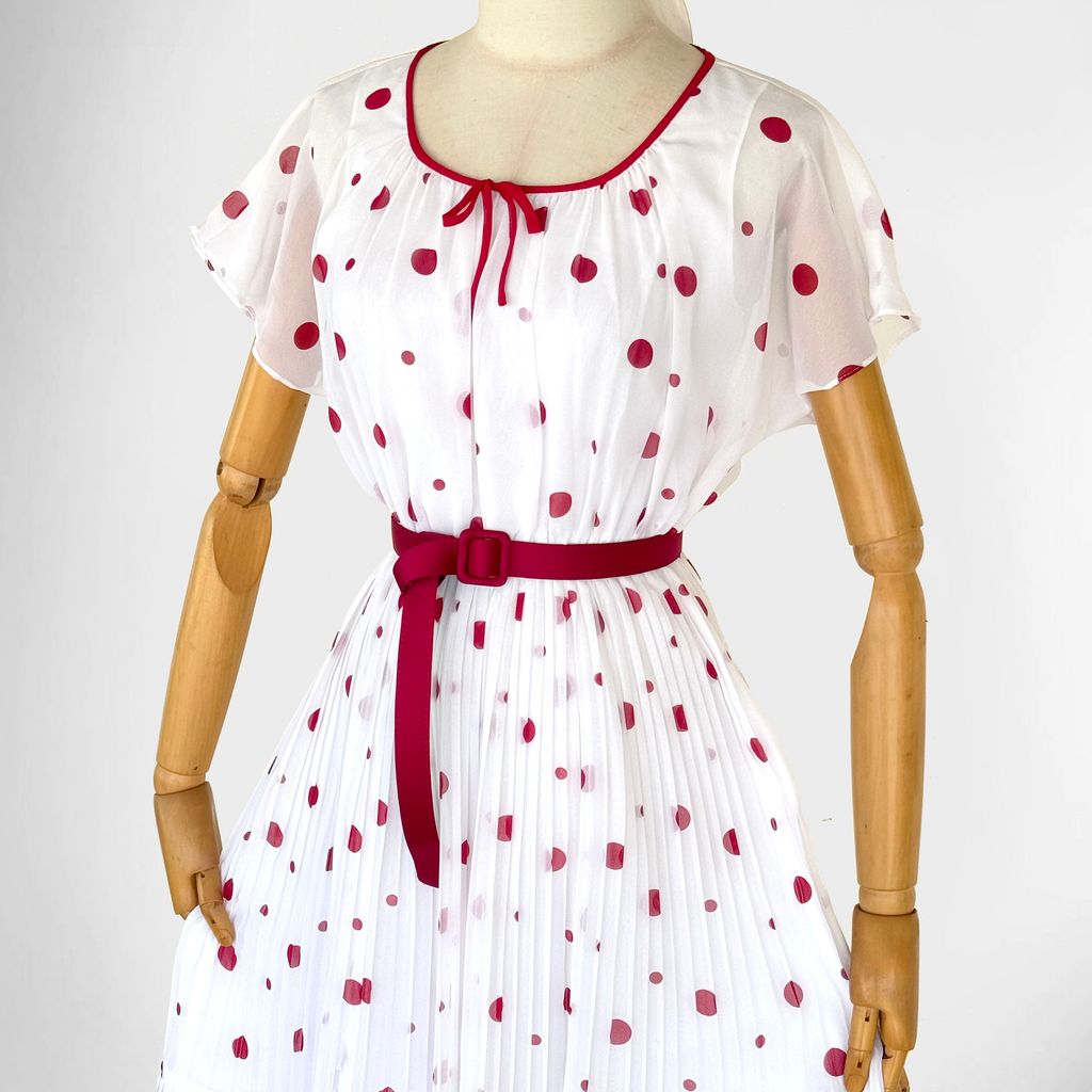 Circa 1980s. Exquistise white dress with polka dots print.